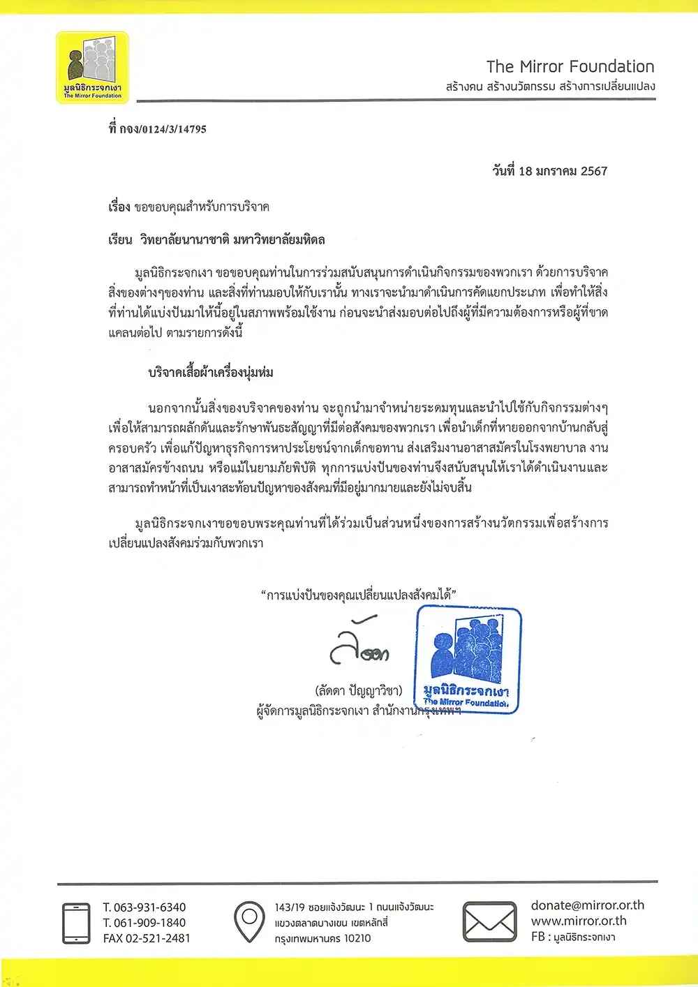 The Office of Student Affairs, Mahidol University International College (MUIC) engaged in a charitable initiative, generously contributing essential items to elderly care facilities and non-profit organizations.
