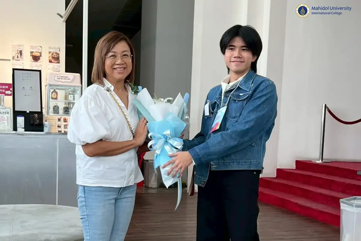 The Mahidol University International College (MUIC) executive team led by Assoc. Prof. Dr. Yingyot Chiaravutthi, Associate Dean; Assoc. Prof. Dr. Chanchai Phonthanukitithaworn, Associate Dean for Corporate Communication and Information Technology; and AjarnWimonsiri Hemtanon, Associate Dean for Student Affairs; accompanied by Prof. Dr. Nopraenue Sajjarax Dhirathiti, Vice President for Global Partnerships and University Council of Mahidol University, and a faculty member of the Social Science Division of MUIC, along with staff members, laid a royal Pan-Pum (a traditional floral arrangement) in front of the statue of His Royal Highness Prince Mahidol of Songkla as part of paying obeisance to him and also in observance of the 57th Anniversary of the Royal Bestowal of the University Name and the commemoration of Mahidol University’s 138th Anniversary, on March 2, 2026 at the Office of the President.