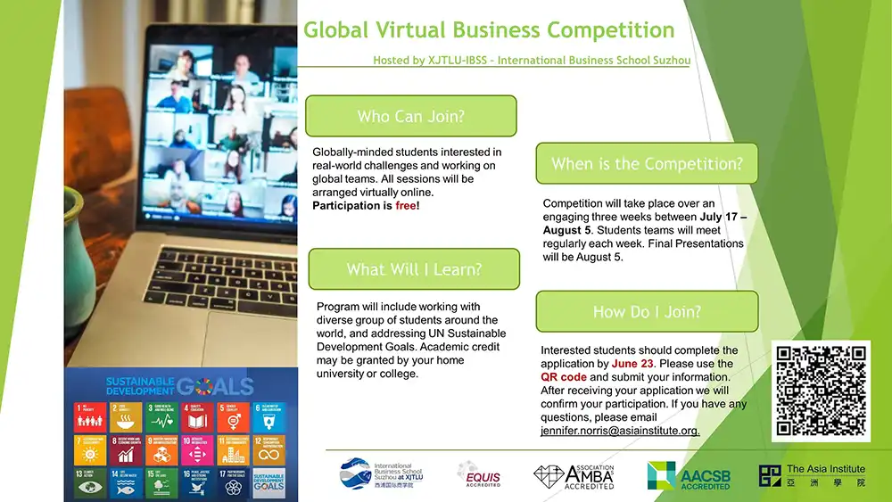 We would like to invite you to join this year’s Virtual Business Project Competition hosted by the International Business School of Suzhou at Xi’an Jiaotong Liverpool University (XJTLU) taking place between July 17th~August 5th, 2023.