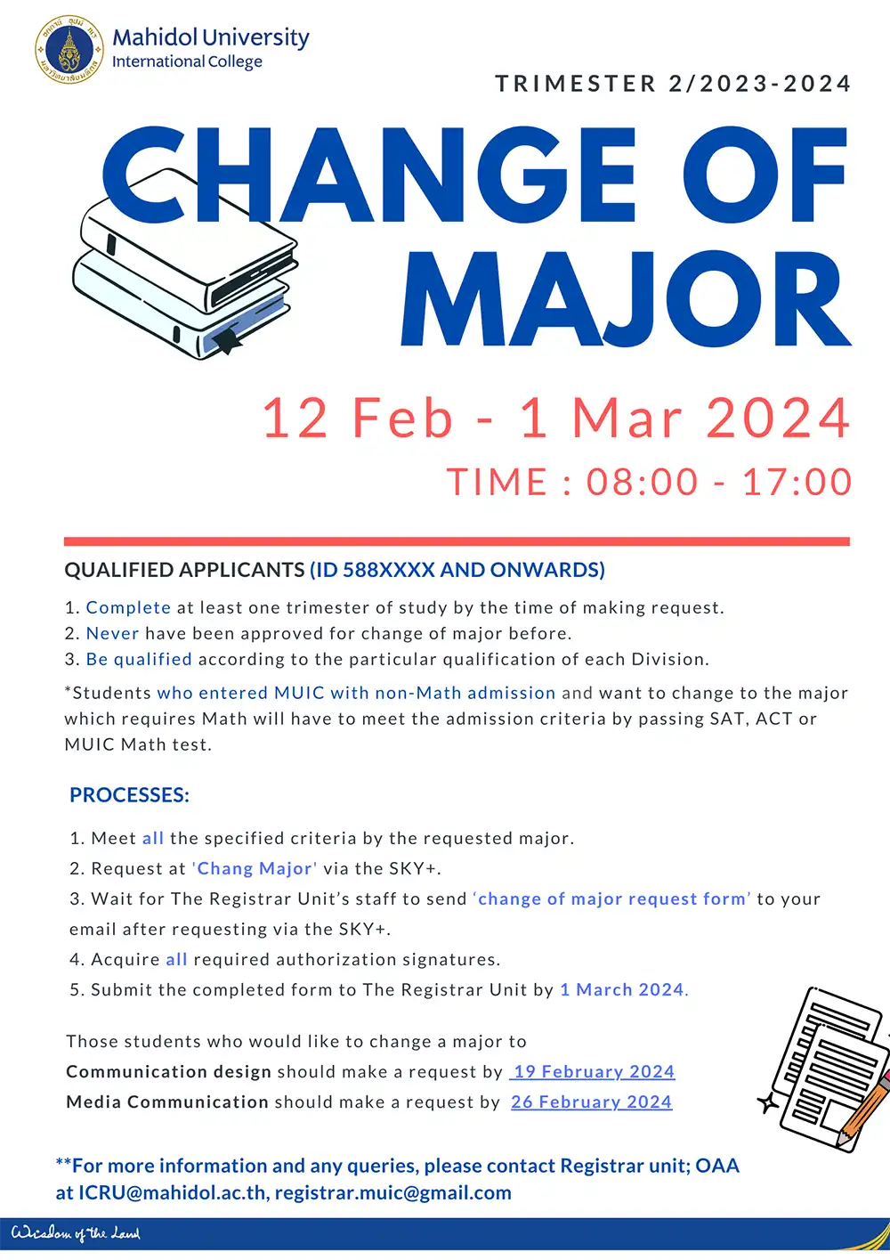 * *For more information and any queries, please contact Registrar Unit at icru@mahidol.ac.th or registrar.muic@gmail.com