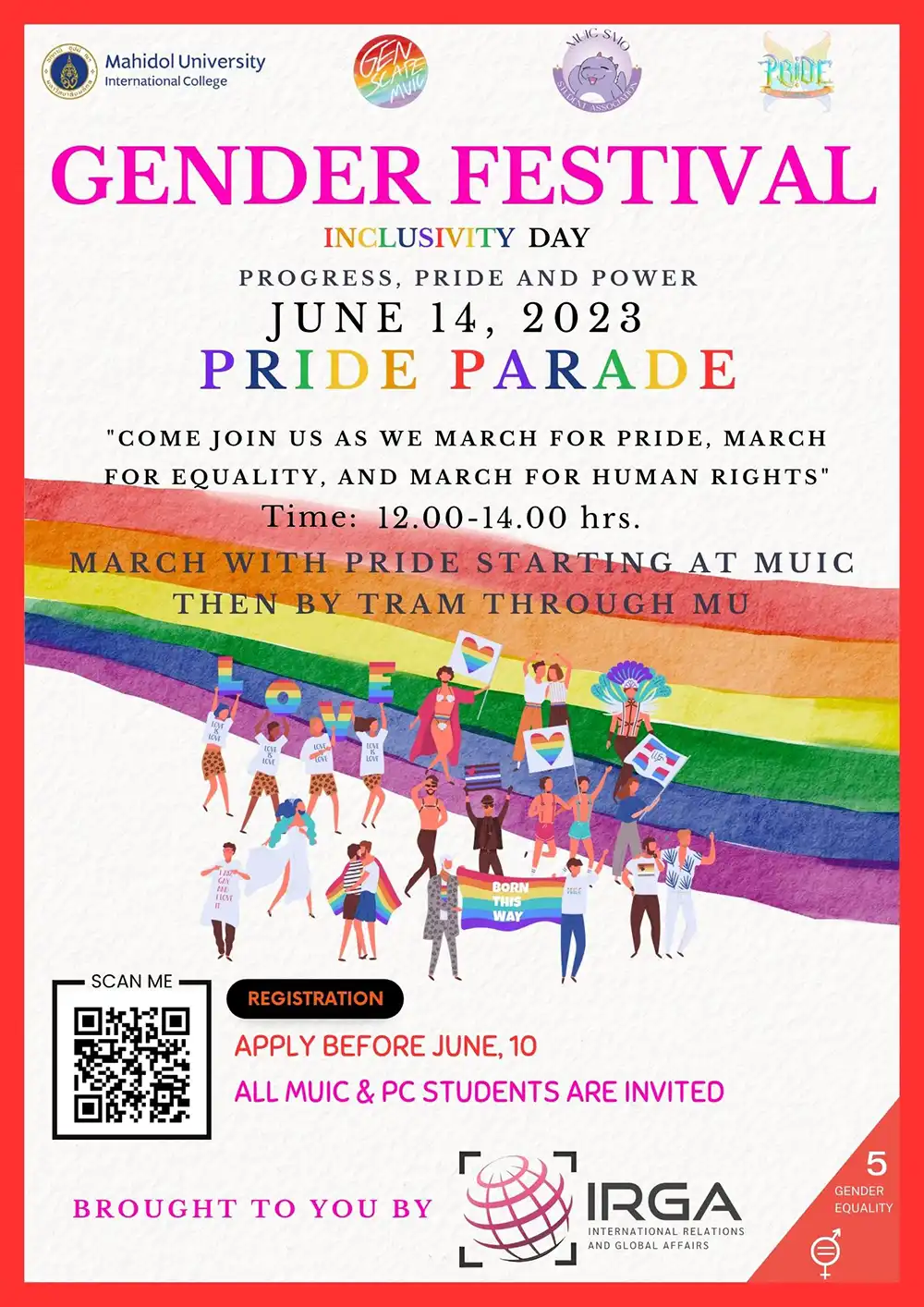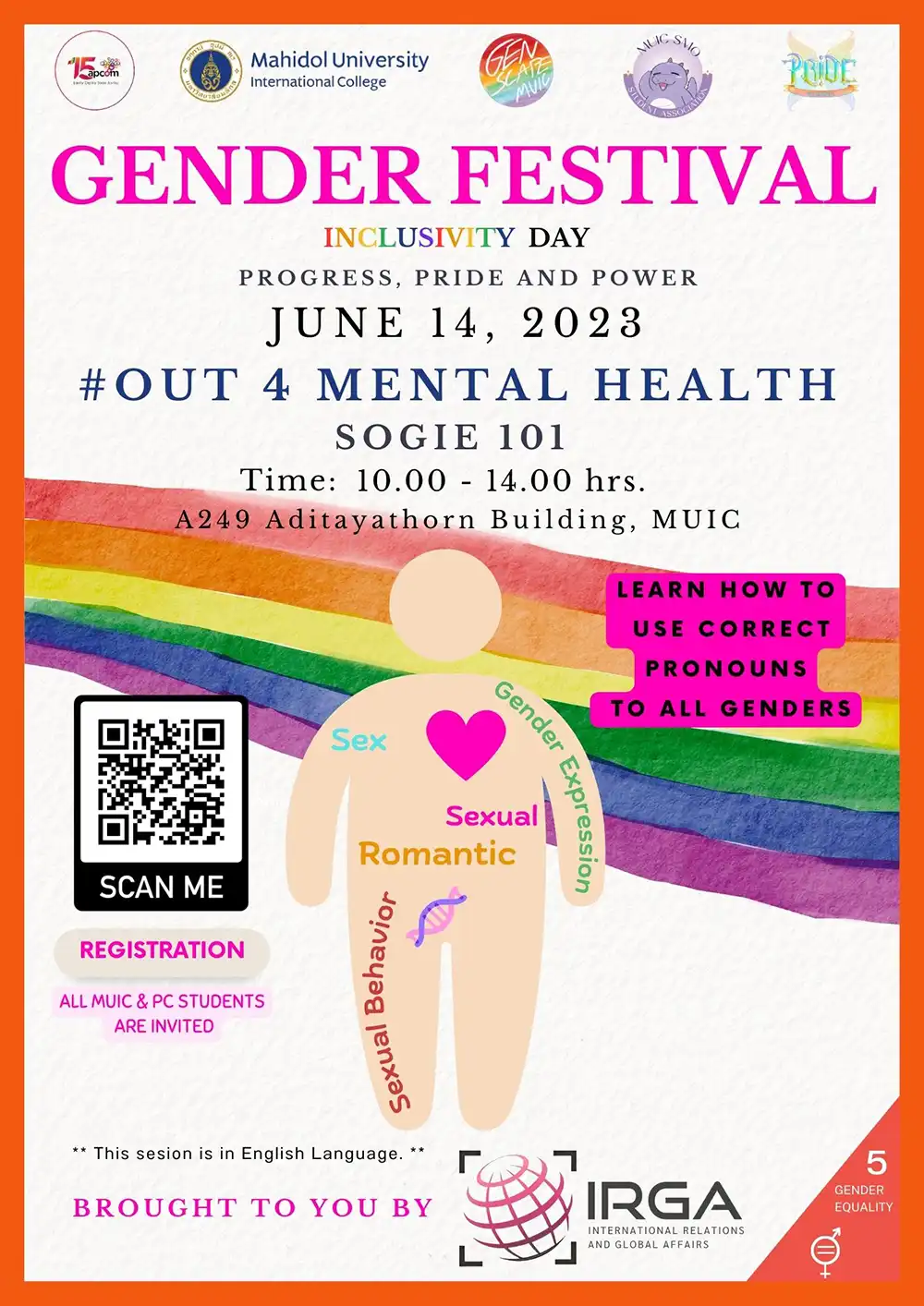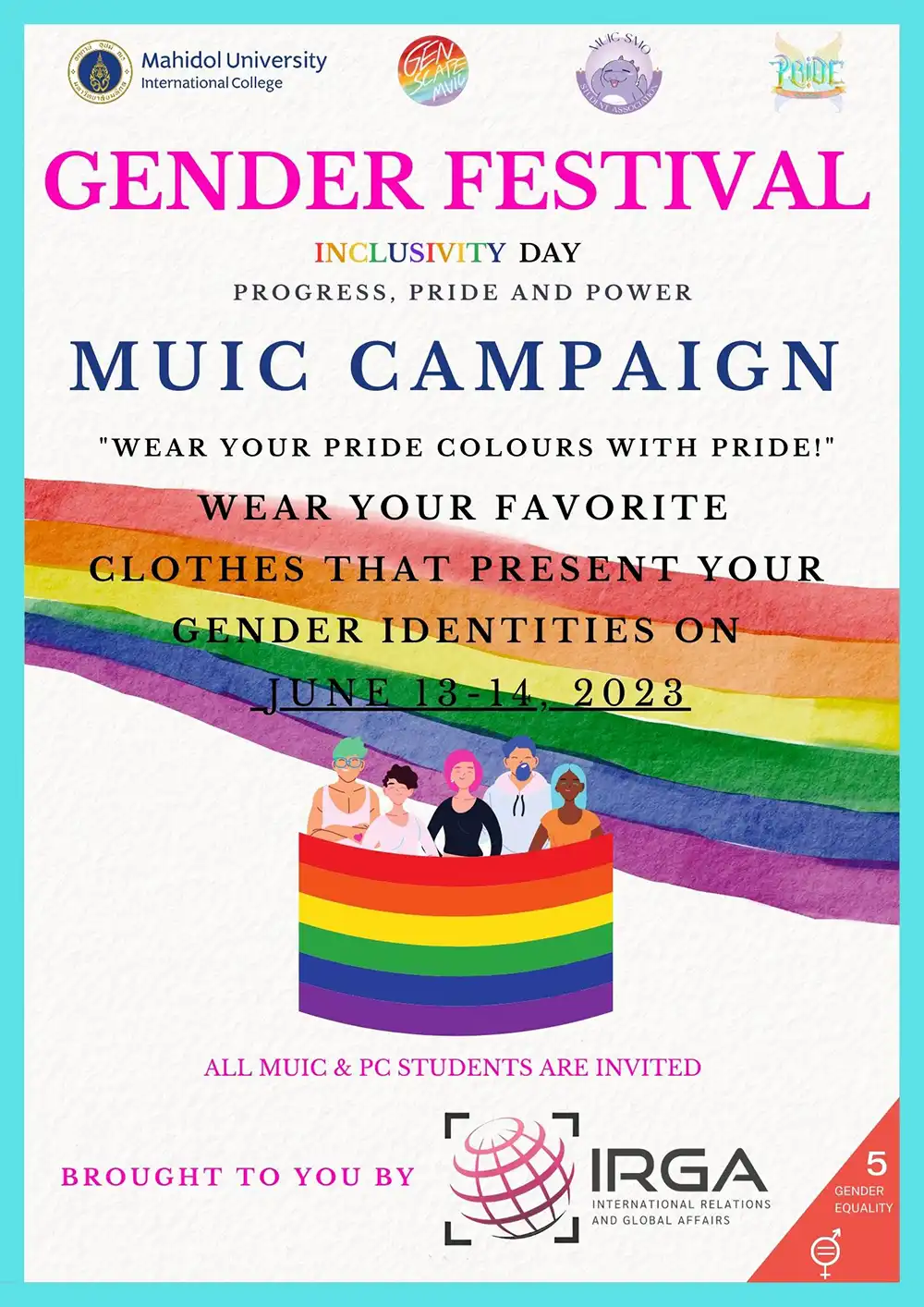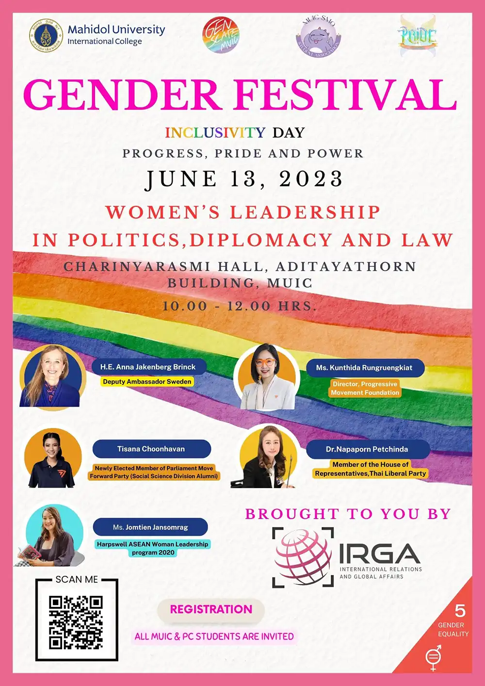 We look forward to having you celebrate IRGA’s Gender Festival with us.