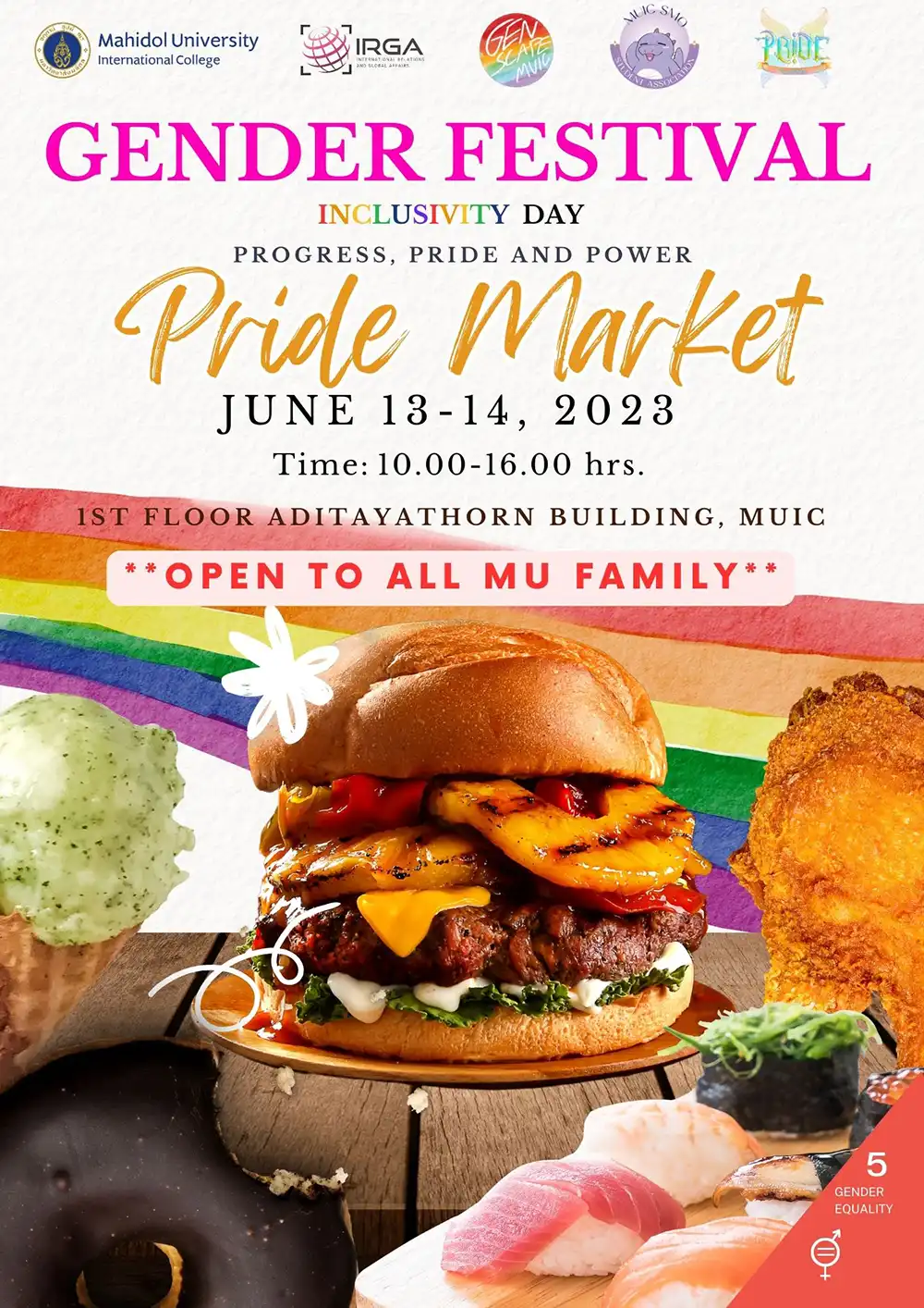 The International Relations and Global Affairs major will host a number of events this coming June 13-14 in the Aditayathorn Building. IRGA’s “Gender Festival” will comprise seminar’s, movies, parades, beauty shows, workshops and a food fest.