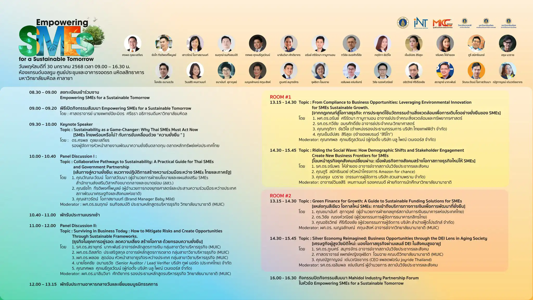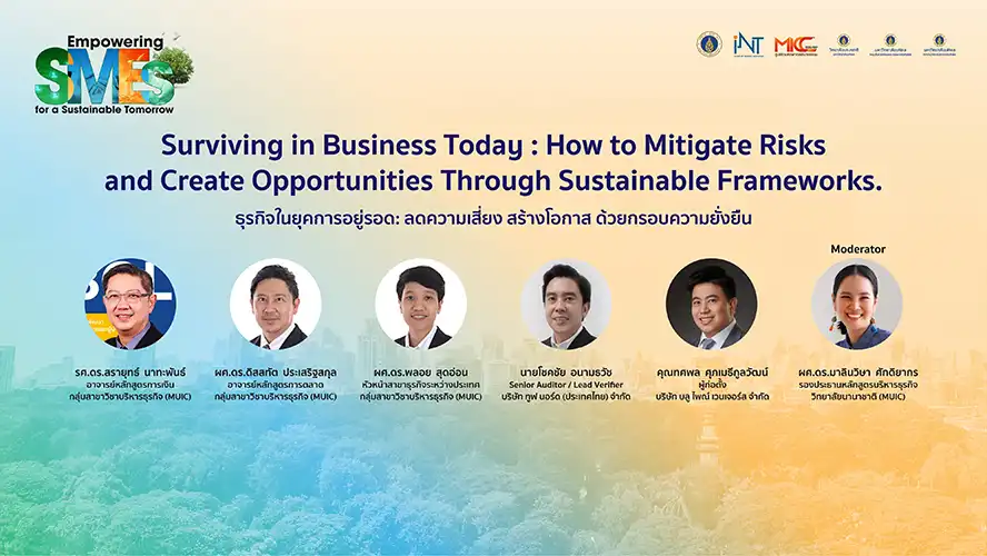 Mahidol University International College, in collaboration with the Institute for Technology and Innovation Management (iNT), the Faculty of Environment and Resource Studies, and the Institute for Population and Social Research, Mahidol University, cordially invites all SME entrepreneurs to join the Mahidol Industry Partnership Forum: Empowering SMEs for a Sustainable Tomorrow—an event that will open new horizons for sustainable business development!