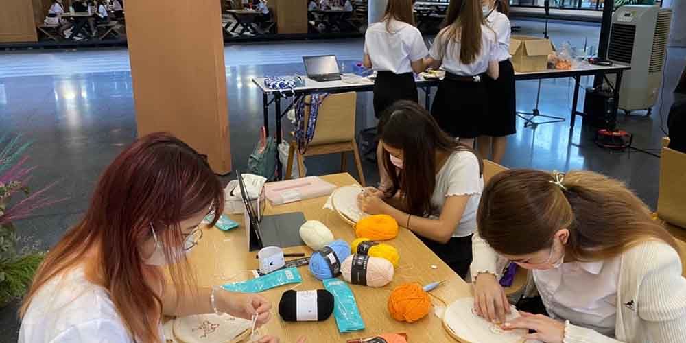 The Art Club of Mahidol University International College (MUIC) organized its first onsite activity for Term 1 called “Punch Needle” on September 26-27, 2022 at the ground floor, Aditayathorn Building.