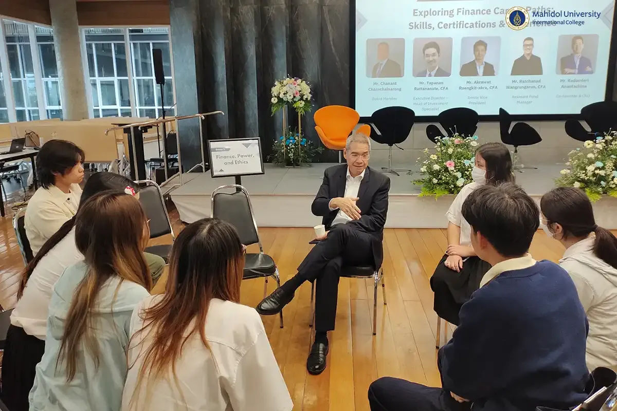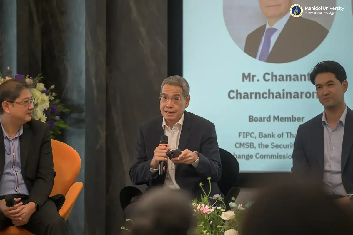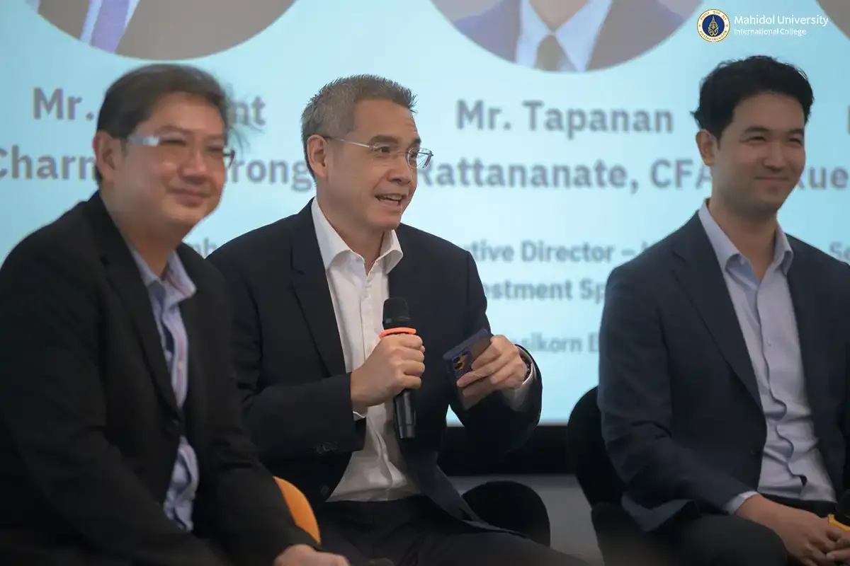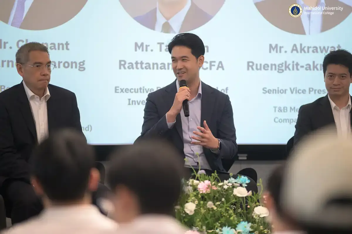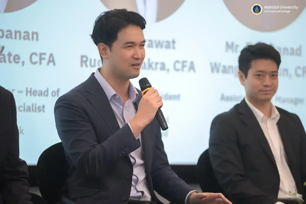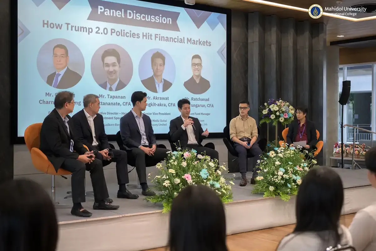 The Business Administration (BA) Division of Mahidol University International College (MUIC) successfully hosted the first CFA Talk Series under the theme “Finance in a Shifting World in the Era of Trump 2.0” at Charinyarasami Hall in Aditayathorn Building, featuring leading experts from Thailand’s finance industry.