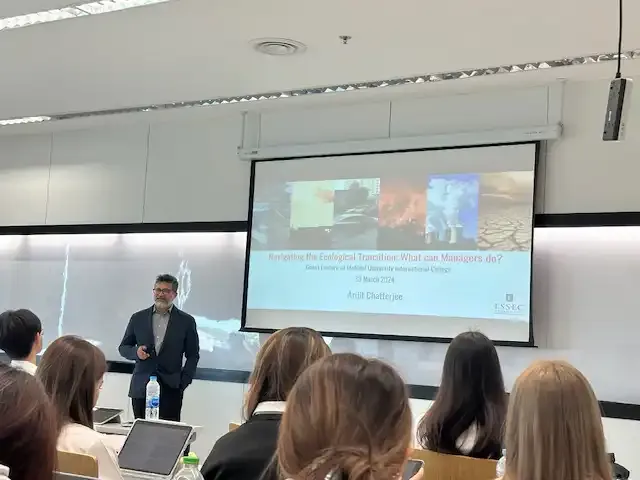 The Business Administration (BA) Division of Mahidol University International College (MUIC) had the honor of hosting Prof. Arijit Chatterjee from ESSEC Business School in Singapore for a lecture session on March 19, 2024 on the topic of “Responsible Business Leadership.” The event, focused on the role of managers in navigating the transition towards sustainable business practices, garnered an enthusiastic response from participants.