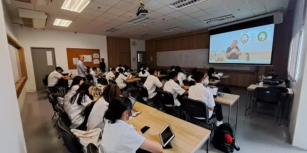 Mr. Laird Allan and Dr. Kritya Bunchongchit of the Science Division are leading a team of 16 upper-class student mentors from Mahidol University International College (MUIC) to instruct 286 Grade 10 students at Mahidol University International Demonstration School (MUIDS) during September and October 2023.