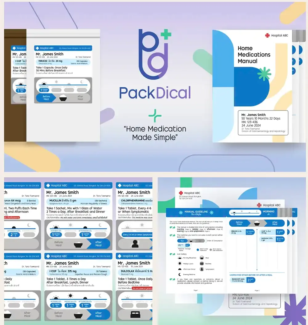 PackDical is a medical packaging design brand, redesigning the product label and manual for home medication in Thailand outpatient care setting.