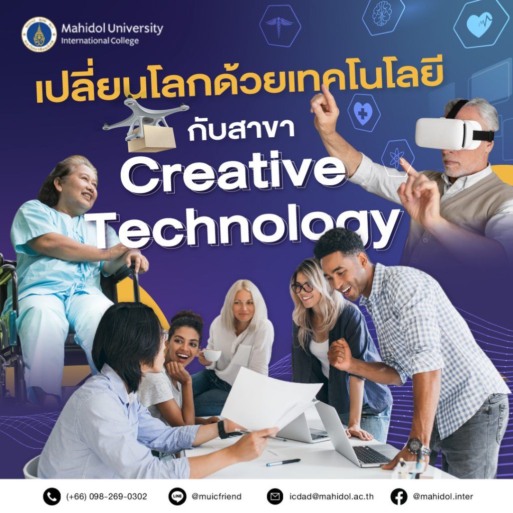 Our 'Creative Technology' is one of the majors which provides ‘Social Learning’, integration of curriculum details and social contribution. The major has collaborated with the Faculty of Information and Communication Technology, College of Music, and Ratchasuda College which is responsible for taking care of disabled students. Thus, the students would learn in many areas, exchange information with students in different majors, and create their own pieces of work or projects by adapting knowledge they gained from learning in the Creative Technology major to solve the problems and develop society. For example, some students might develop applications for giving advice to users with mental health problems.