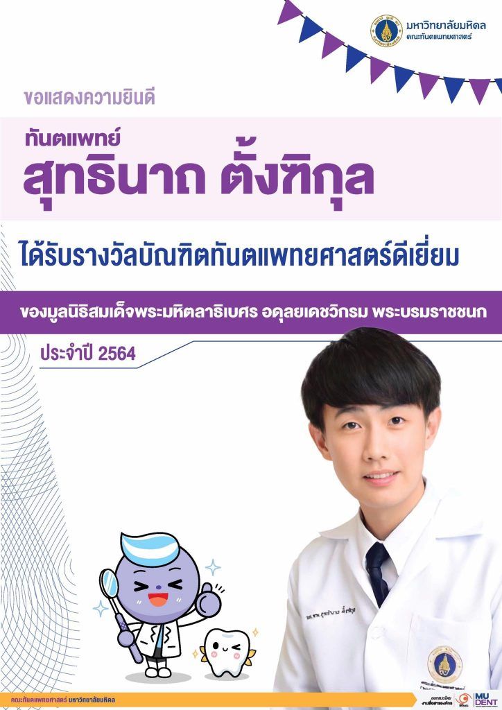 Dr. Suthinard Tangthikul, Doctor of Dental Surgery (DDS), Bachelor of Science in Biological Sciences (MUIC Class of 2016), received recently the Outstanding Dental Graduate Student Award 2021 from the Prince Mahidol Foundation.