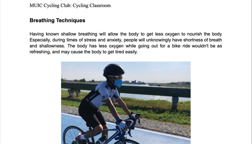 Mahidol University International Club’s (MUIC) Cycling Club launched an educational website in an activity called "Cycling Classroom" that ran from June 14 to July 4, 2021.