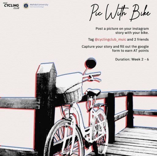 Mahidol University International College’s (MUIC) Cycling Club organized “Pic with Bike,” an activity in which MUIC students posted on Instagram pictures of themselves together with a bike.