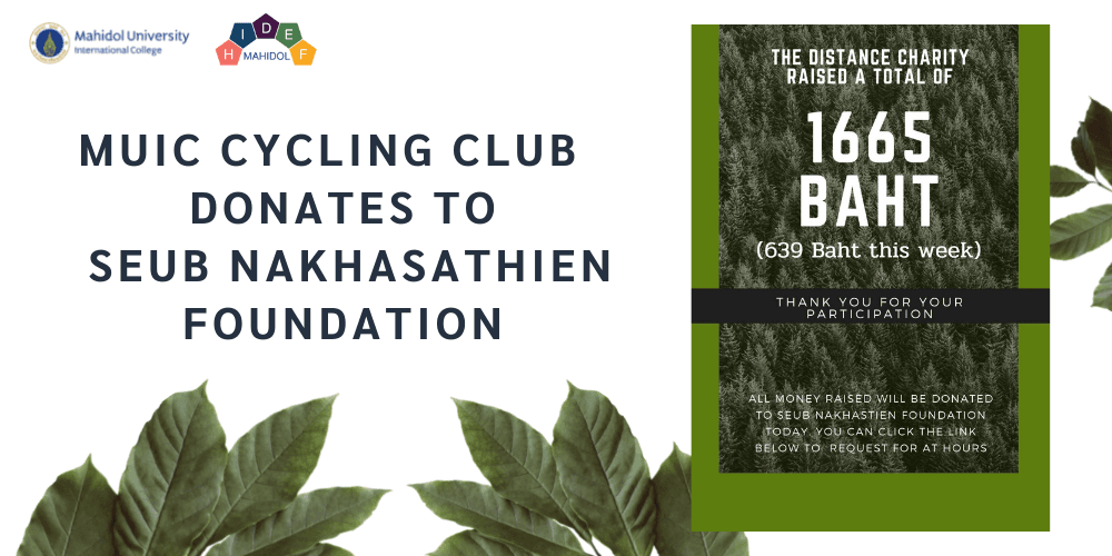 Mahidol University International College’s (MUIC) Cycling Club organized "Distance Charity: Seub Nakhasathien Foundation" on February 8 - March 13, 2021.