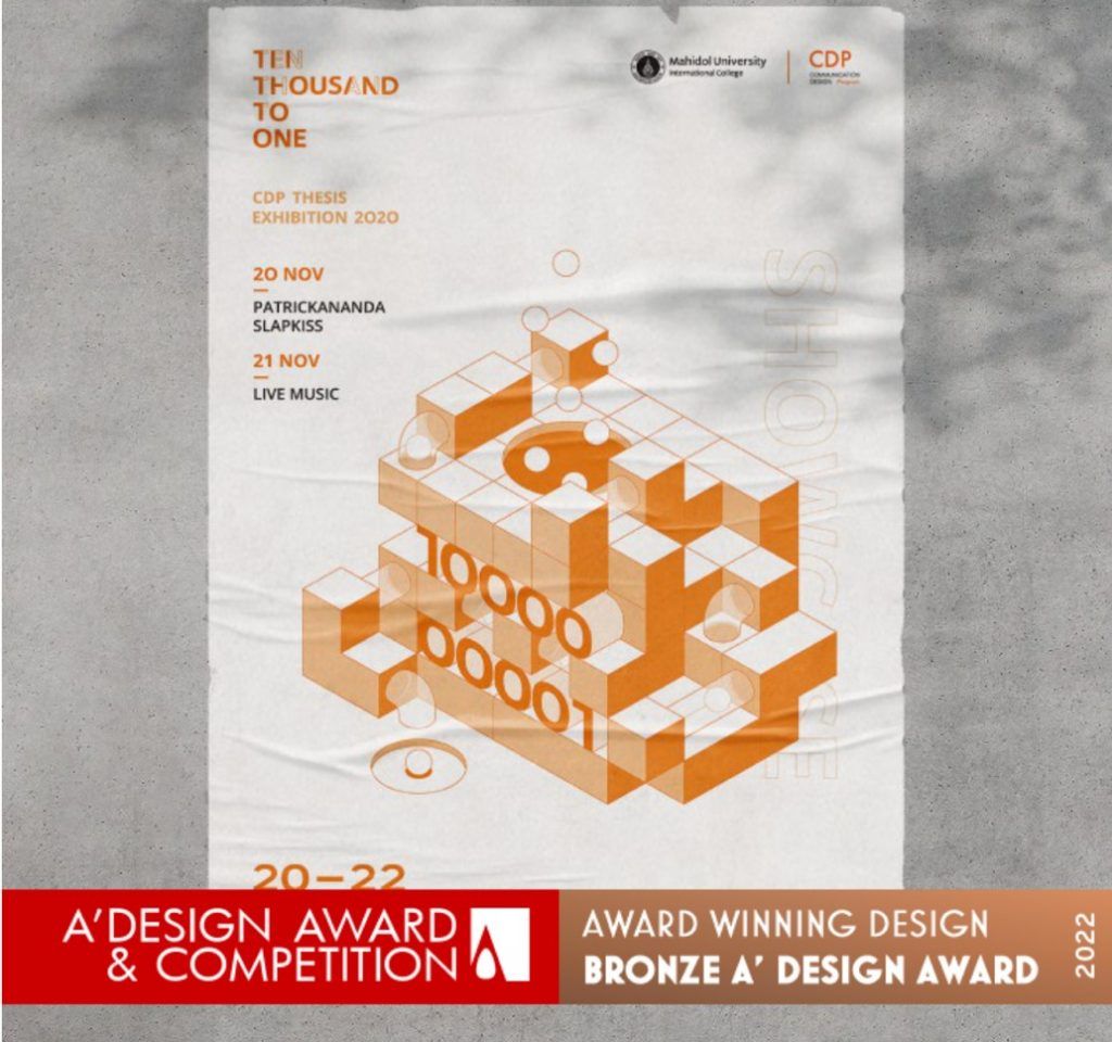 The Communication Design Program’s senior project exhibition in 2020 entitled “Ten Thousand To One” and its promotional material won the “Bronze A’Design Award for A’Graphics, Illustration and Visual Communication Design Award” during the A’Design Award & Competition held recently.