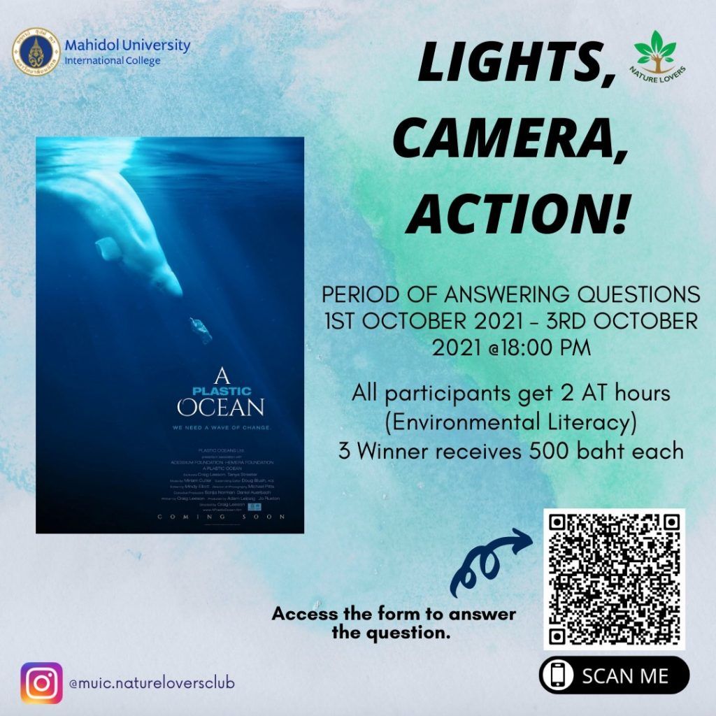 “Lights, Camera, Action!” was the first activity organized by Nature Lovers Club for Academic Year 2021 - 2022. It was a very successful event that ran from September 27 to October 3, 2021. Around 80 MUIC students participated.