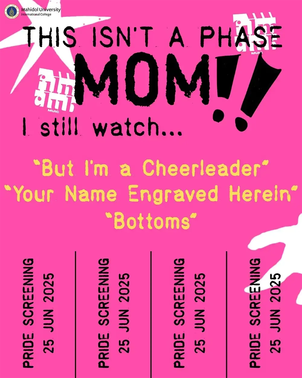 On June 25 2025, the Film Club of Mahidol University International College (MUIC) turned the Screening Room at Aditayathorn Building into a cinema where students can come together and watch movies in celebration of Pride Month!