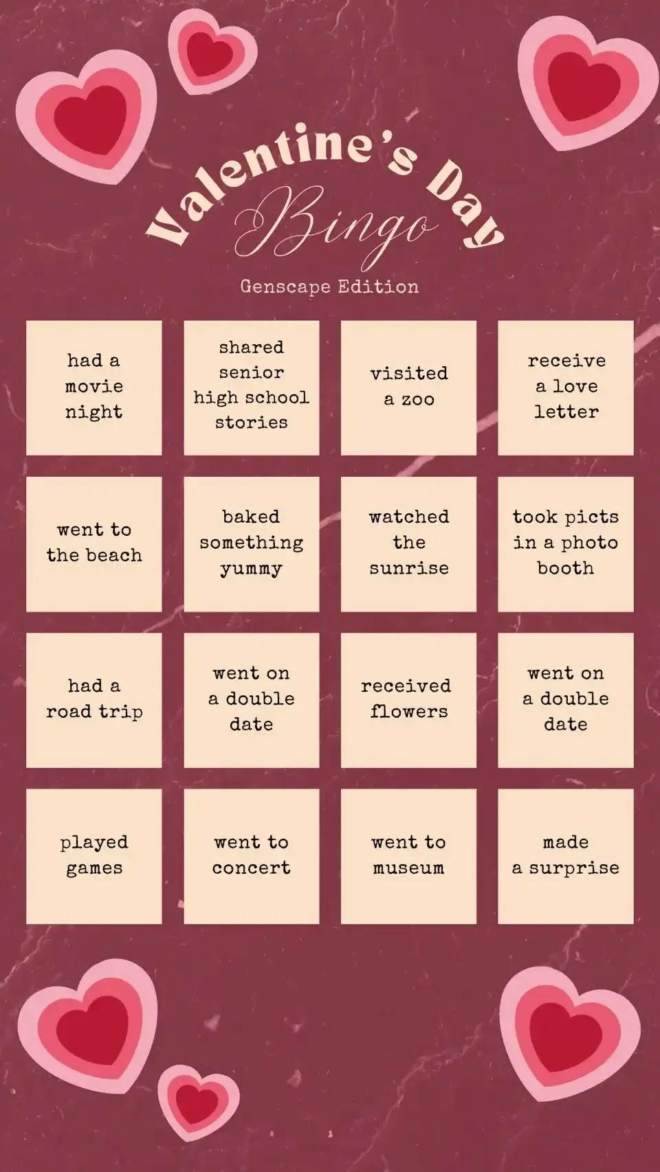 Genscape Club’s Valentine’s Day Bingo