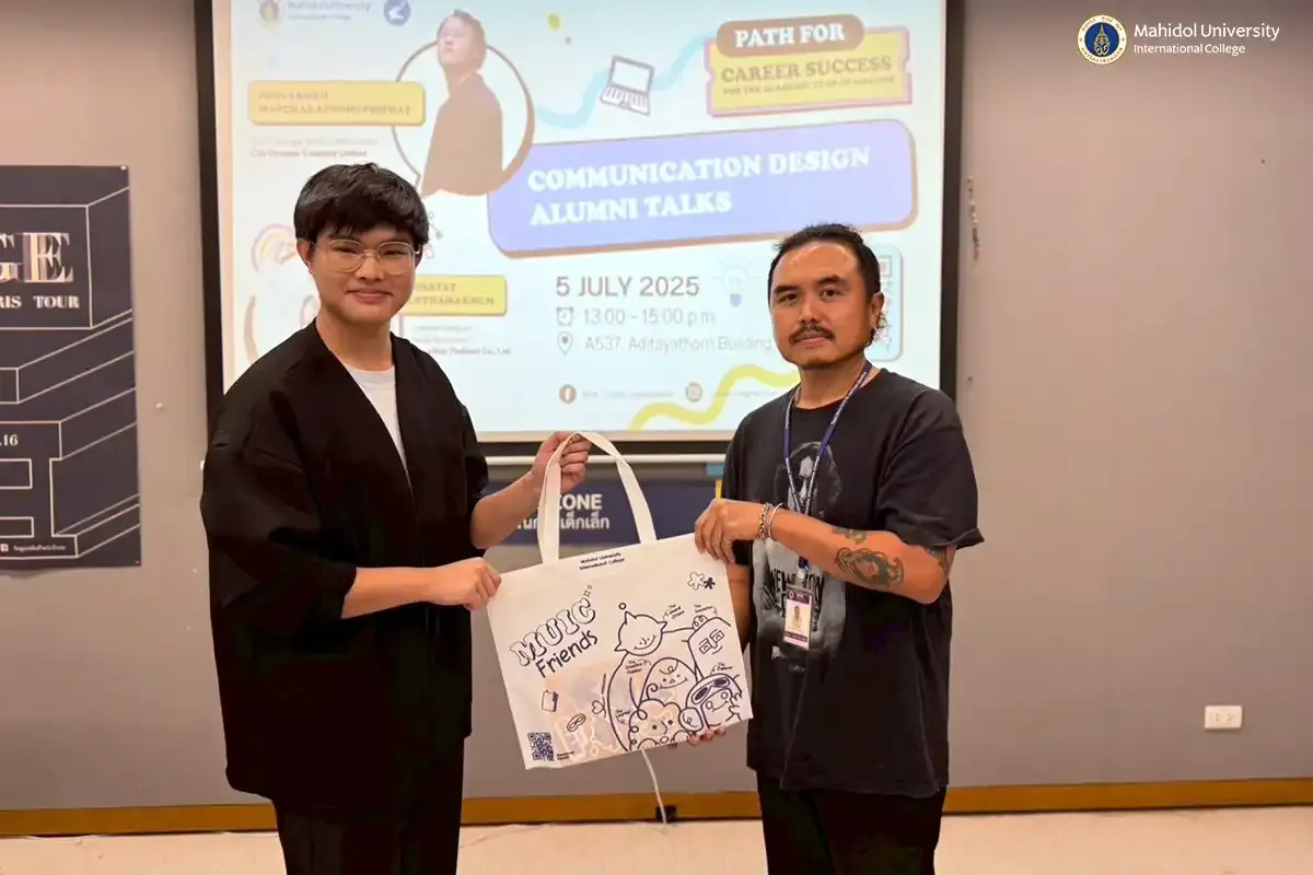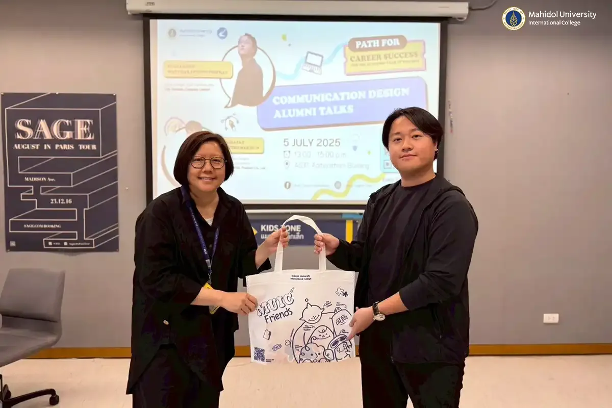 The Alumni Affairs and Career Development Group, in collaboration with the Communication Design Program and the Career Insights Club, Mahidol University International College (MUIC) organized the final session of Path for Career Success for the Academic Year of 2024-2025 on July 5, 2025 at Room A537, Aditayathorn Building. The event’s theme, “Communication Design Alumni Talks,” was discussed by MUIC alumni speakers: