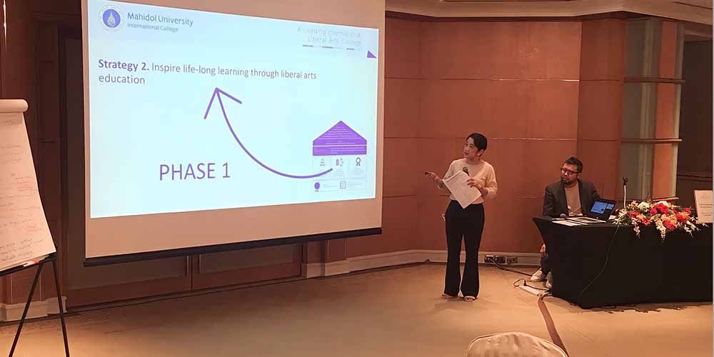 Asst. Prof. Dr. Patsarin Wongkamhaeng, Assoc. Dean for Strategic Planning and Quality Development (SPQD), and Assoc. Prof. Dr. Claus Schreier, Asst. Dean for SPQD, participated as well, helping explain to the division MUIC’s 4-year plan. Mr. Ratha Techa-apichoke, an associate of XPotential, served as the overall facilitator of the activity.