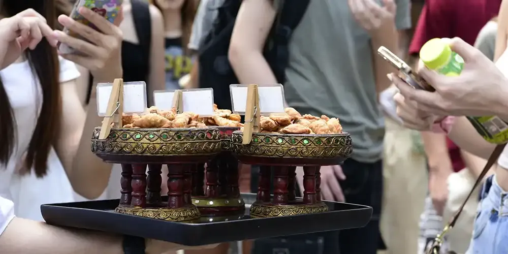 Meant to give the participants a firsthand knowledge of community-based tourism, the students learned about the background of the village, visited an agricultural garden and joined two workshops where they learned how to make Thai desserts and coconut shell key chains. Afterwards, the group visited the famous Amphawa Floating Market.