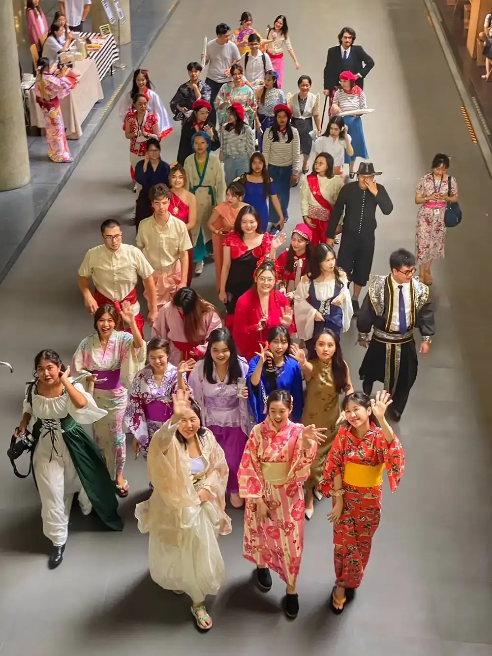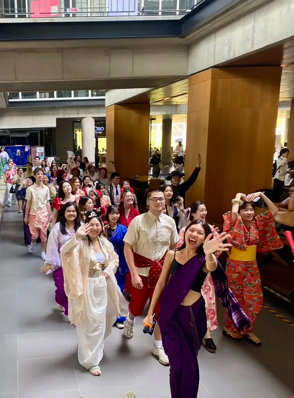 At first glance, you’d think it’s a United Nations event, what with all the colorful national costumes that the students and lecturers were wearing, but it’s February 28, not October, so this must be something else. Ah, yes, it’s the “National Costumes Parade” organized by the ICIC Ambassadors as part of the Humanities and Language Division’s “Art and Culture Week.”