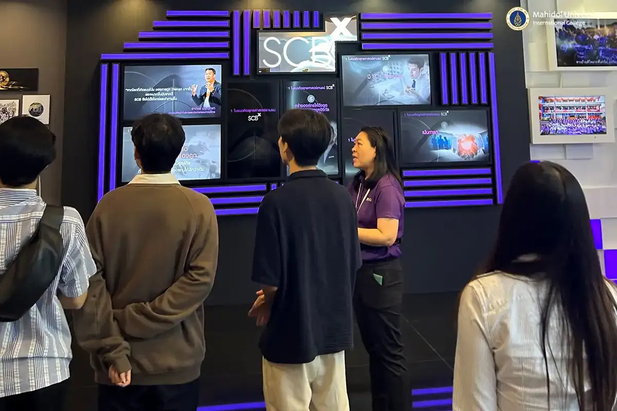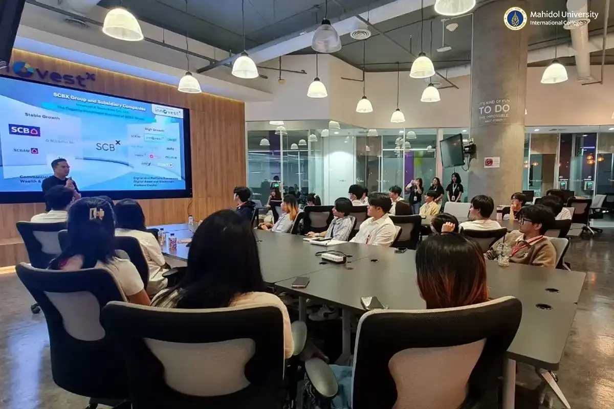 The Investment Club of Mahidol University International College (MUIC) organized a site visit to SCB and InnovestX at Ratchadapisek Road, Chatuchak, Bangkok on March 14, 2025.