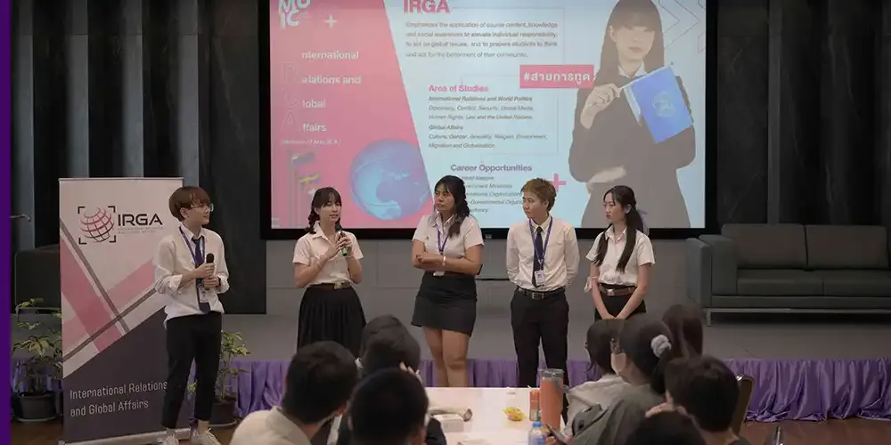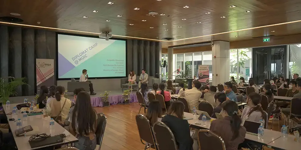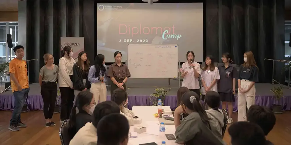 Around 60 high school students got a firsthand experience of the life of diplomats when they attended the “Diplomat Camp” organized by the International Relations and Global Affairs (IRGA) Program of Mahidol University International College (MUIC) on September 2, 2023 at Charinyarasami Hall, Aditayathorn Building, MUIC.