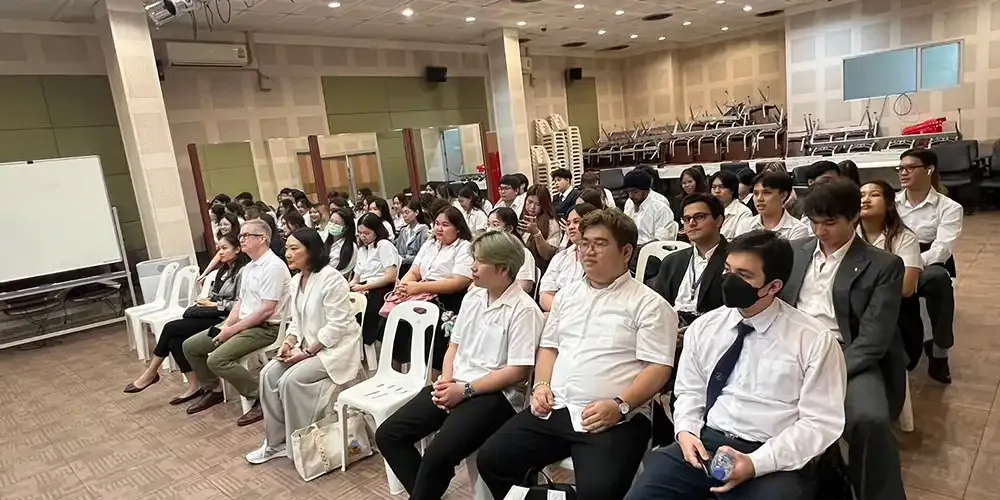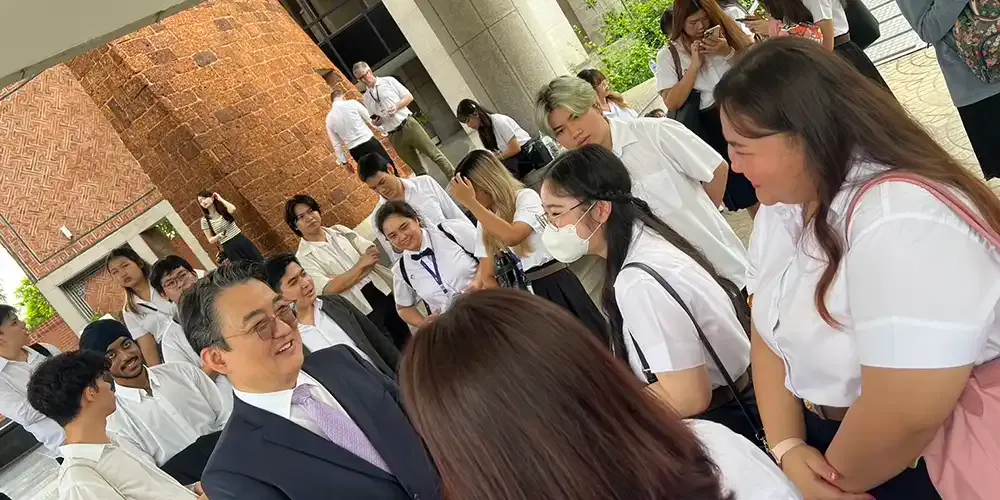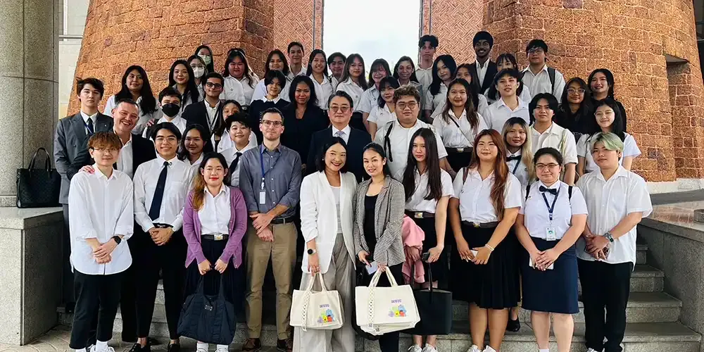 A group of 50 International Relations and Global Affairs (IRGA) faculty members, students, and staff visited the Embassy of the Republic of Korea and Korean Cultural Center, both located on Ratchadaphisek Road, Bangkok on May 24, 2024.