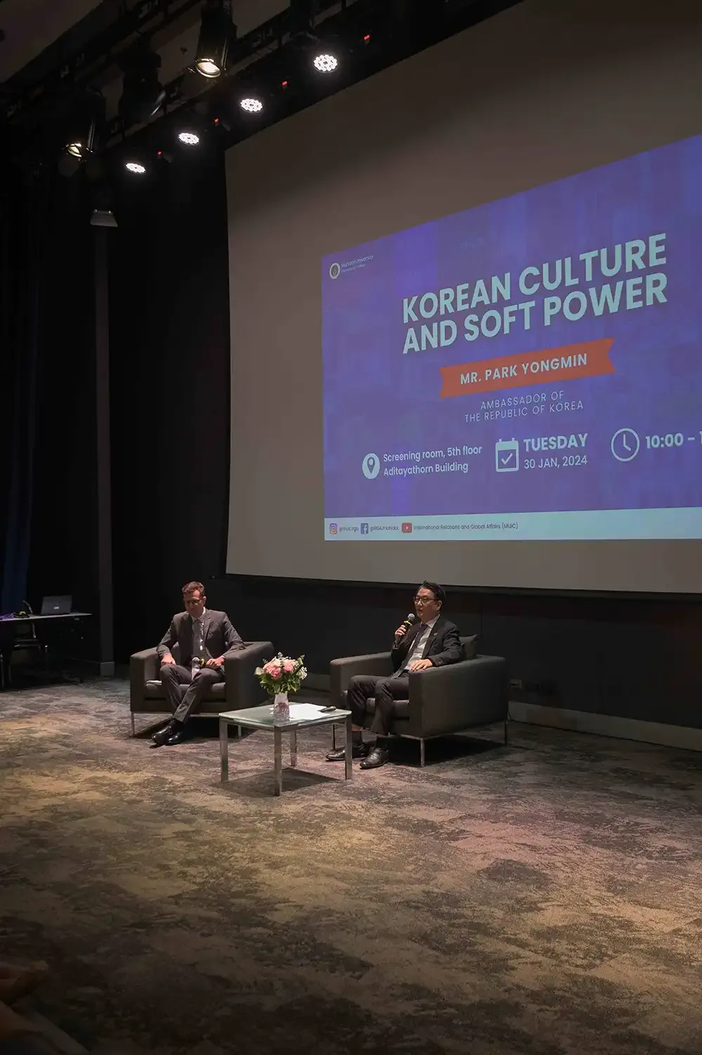 Mahidol University International College’s (MUIC) International Relations and Global Affairs (IRGA) program organized a special talk on “Korean Culture and Soft Power” with H.E. Mr. Park Yongmin, South Korean Ambassador to Thailand as guest speaker.