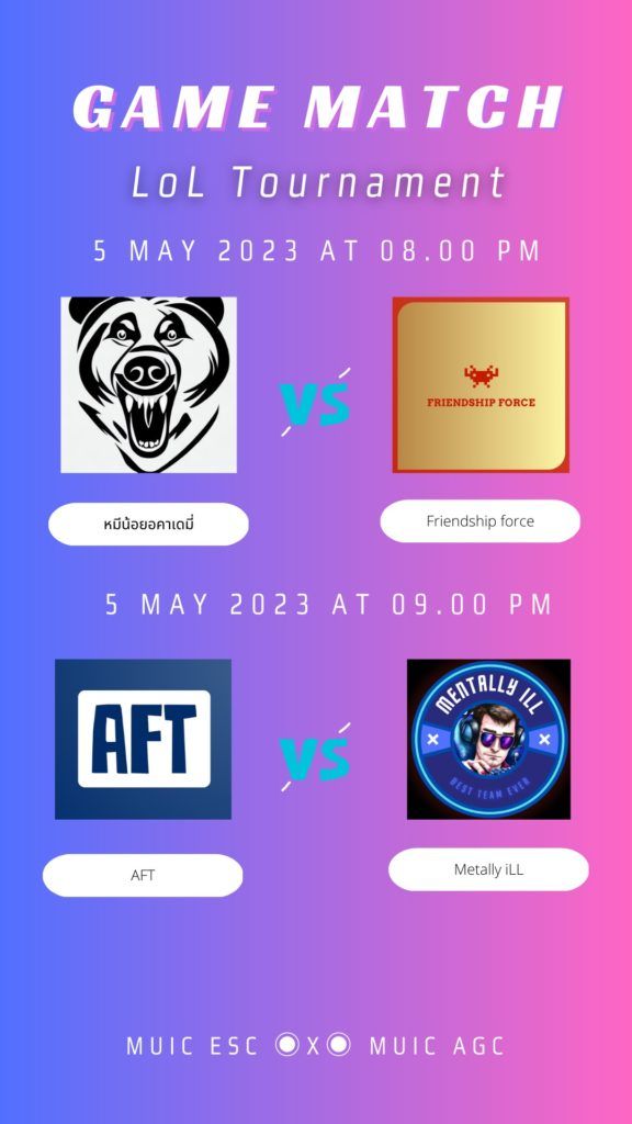 The E-Sport Club of Mahidol University International College (MUIC) organized the “League of Legends Tournament,” a competition for the club’s members who enjoy playing the popular online game, League of Legends from May 4 to 7, 2023.