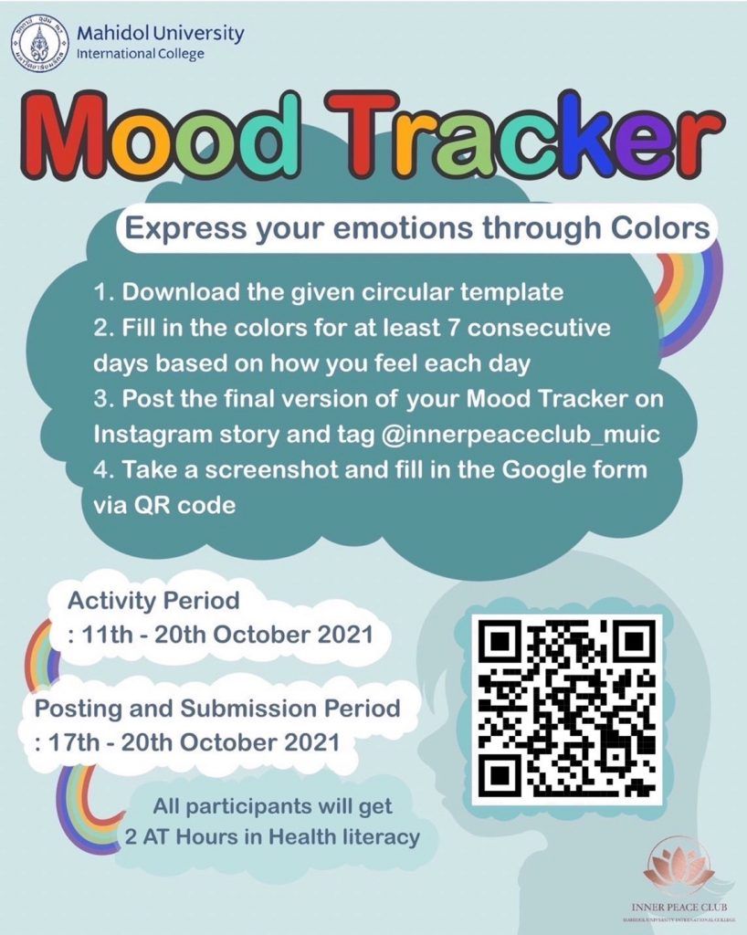 3. Once completed in the next 7 days, post the final version of your Mood Tracker on Instagram story and tag @innerpeaceclub_muic.
