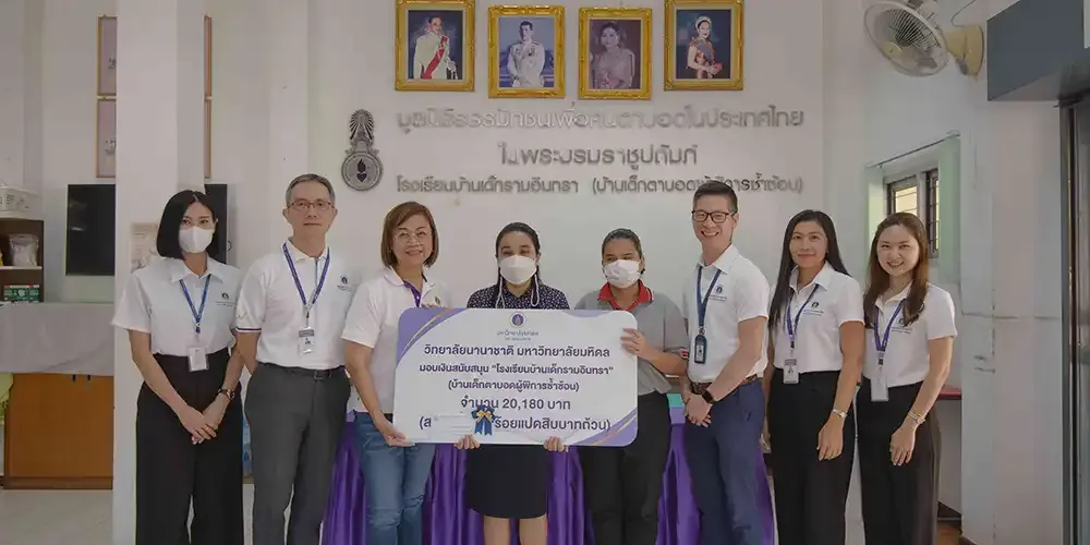 Prof. Chulathida Chomchai, M.D., MUIC Dean, together with the college’s executives went to the Home for the Blind with Multiple Disabilities on April 18, 2024 to turn over to its officials a total of 20,180 Baht worth of donation.