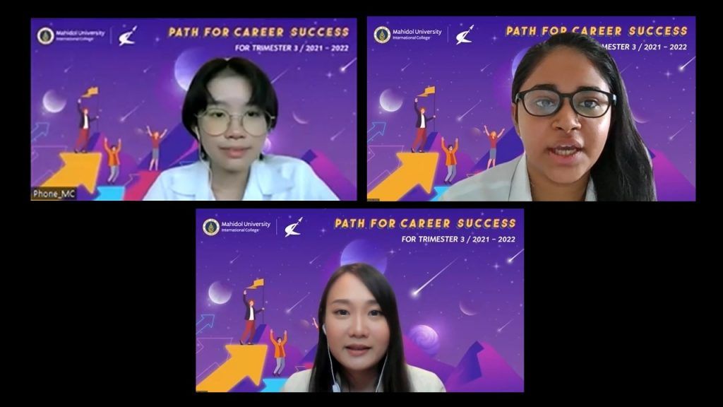 The Alumni Affairs and Career Development Group, Office of Student Affairs, in collaboration with Career Insight Club and all Program Divisions of Mahidol University International College (MUIC) organized a Path for Career Success for Trimester 3/ 2021-2022 event online via Zoom on June 25, 2022.