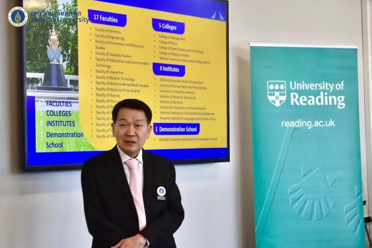 Mahidol University (MU) signed recently a Memorandum of Agreement (MoA) with the University of Reading, United Kingdom, paving the way for the development of a dual master’s degree, research collaboration, exchange of faculty and staff as well as other academic activities between the two institutions.