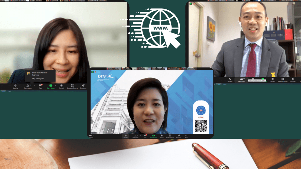 Aside from this, three speakers from the Department of International Trade Promotion (DITP)— Ms. Arada Fuangtong, Deputy Director-General, DITP, Thailand; Ms. Patcha Wutipan from the Office of Information Technology and Service Development Director; and Mr. Chanthapat Panjamanond from the Office of Digital Commerce Marketing Director, discussed the topic “The New Economy Academy: The Tole of DITP to Promote International Trade.”
