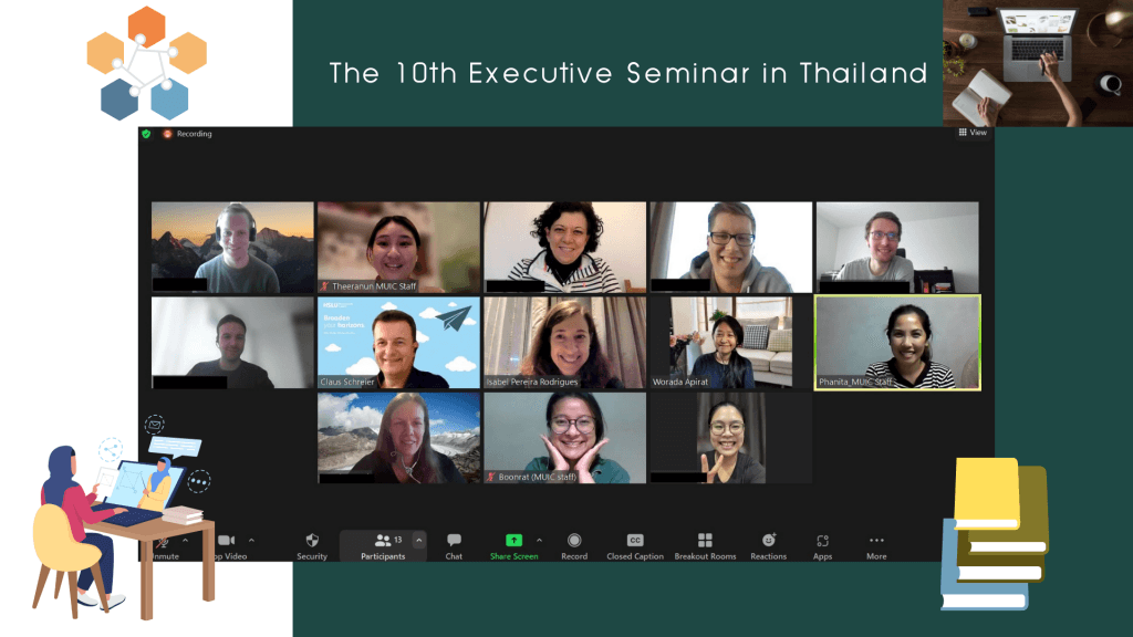 The Business Administration Division and Project Development Unit (PDU) of Mahidol University International College (MUIC), in collaboration with the Institute of Management (IBR), Lucerne University of Applied Sciences and Arts (HSLU), Switzerland, held the 10th Executive Seminar (Online) in Thailand on February 21-25, 2022. This is the second time it was held through an online platform. The participants were mid-level management executives and CEOs working for Swiss companies.