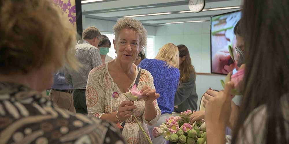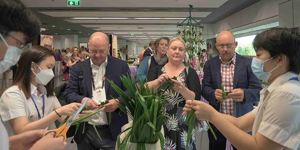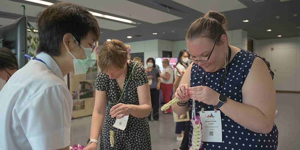 Following the Thai dance performances, the guests were given a guided tour of MUIC facilities and of Mahidol University’s Salaya campus. Coming back from the tour, they were treated to a lunch of Thai cuisine followed by a Thai floral arts workshop where the guests were introduced to basic Thai floral arrangement in a workshop. The guests enjoyed the workshop saying it allowed them to relax and be prepared for their participation in the APAIE Conference held in Queen Sirikit National Convention Center from March 13 to 17, 2023.