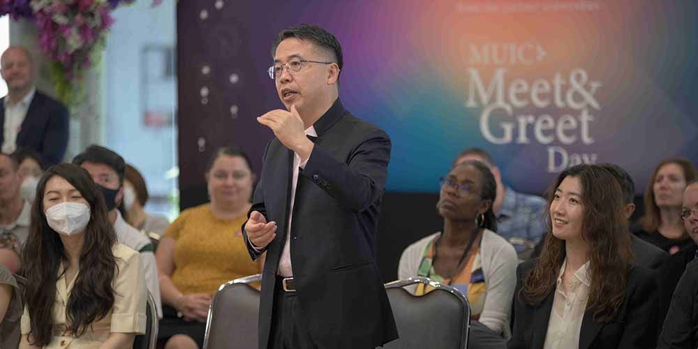 MUIC’s Office of International Affairs organized the event held on March 13, 2023 at Charinyarasami Hall. Prof. Chulathida Chomchai, M.D., the Dean of MUIC welcomed the guests while Asst. Prof. Dr. Alexander Nanni, Associate Dean for International Affairs, assisted by several students, gave a presentation about MUIC.