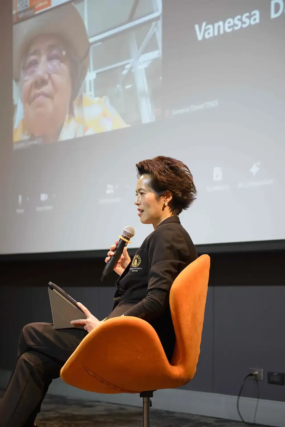 Plenary Session 4: “Women in Science and Their Contributions” was held in the Screening Room with the session chair, Assoc. Prof. Dr. Nopraenue S. Dhirathiti, VP for International Relations and Corporate Communications, Mahidol University, joined onstage by Assoc. Prof. Dr. Walasinee Sakcamduang, Dean of the Faculty of Veterinary Science, Mahidol University.