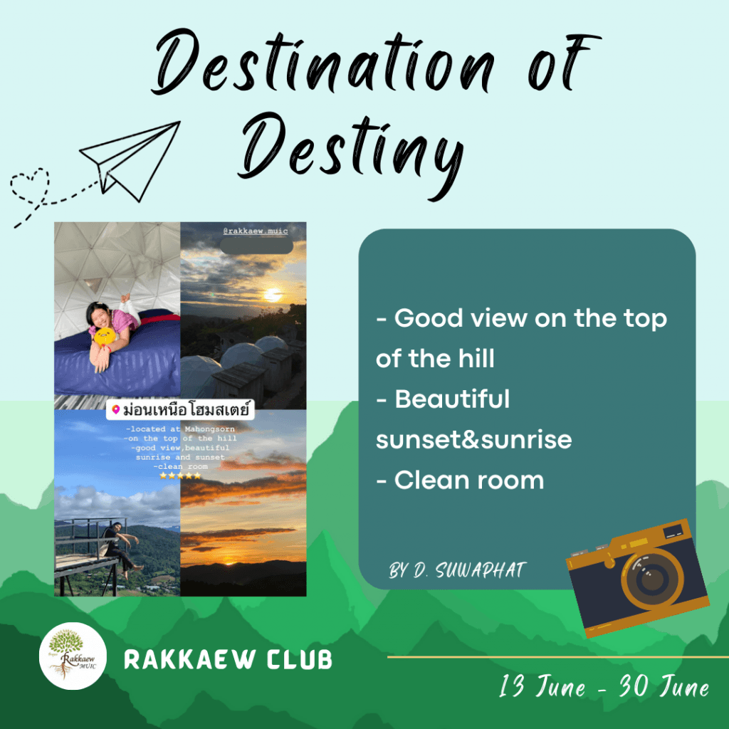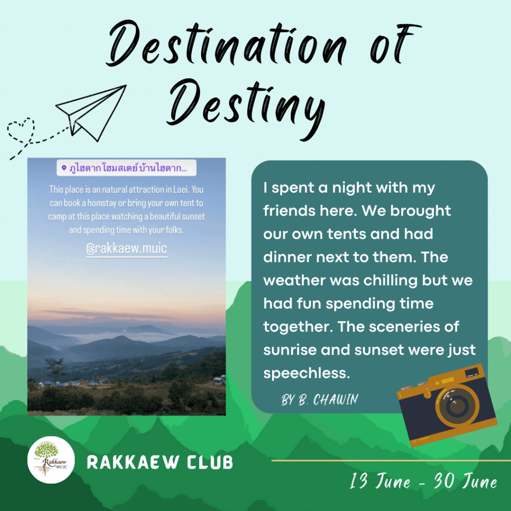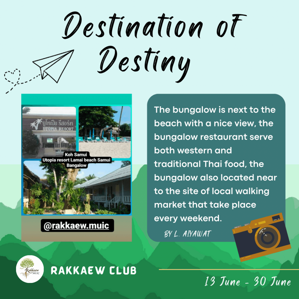 Mahidol University International College’s (MUIC) Rakkaew Club organized an online activity called “Destination of Destiny” on June 13-30, 2022.