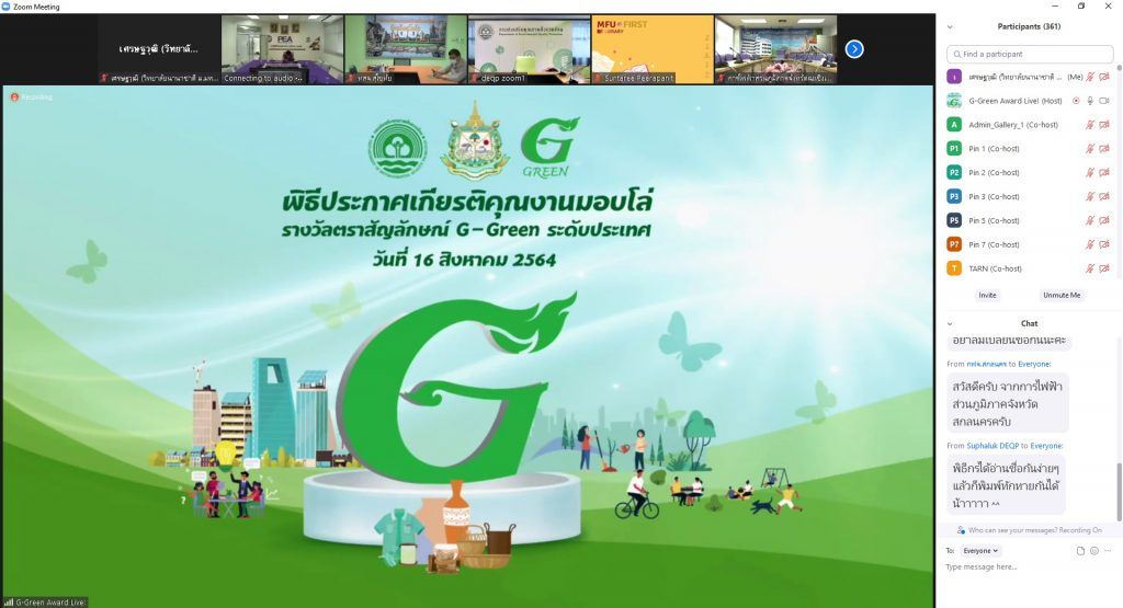The Green Office Award was organized by the Department of Environment Quality Promotion (DEQP) of the Ministry of Natural Resources and Environment. The purpose of the project is to create awareness of environmental problems among office workers and encourage them to make their own small contribution to positive changes in environmental protection through their work habits and help the organization to manage the environment and to reduce greenhouse gas emissions and decrease environmental impact as well as promote the efficient use of resources and energy and follow the guidelines for effective waste management.