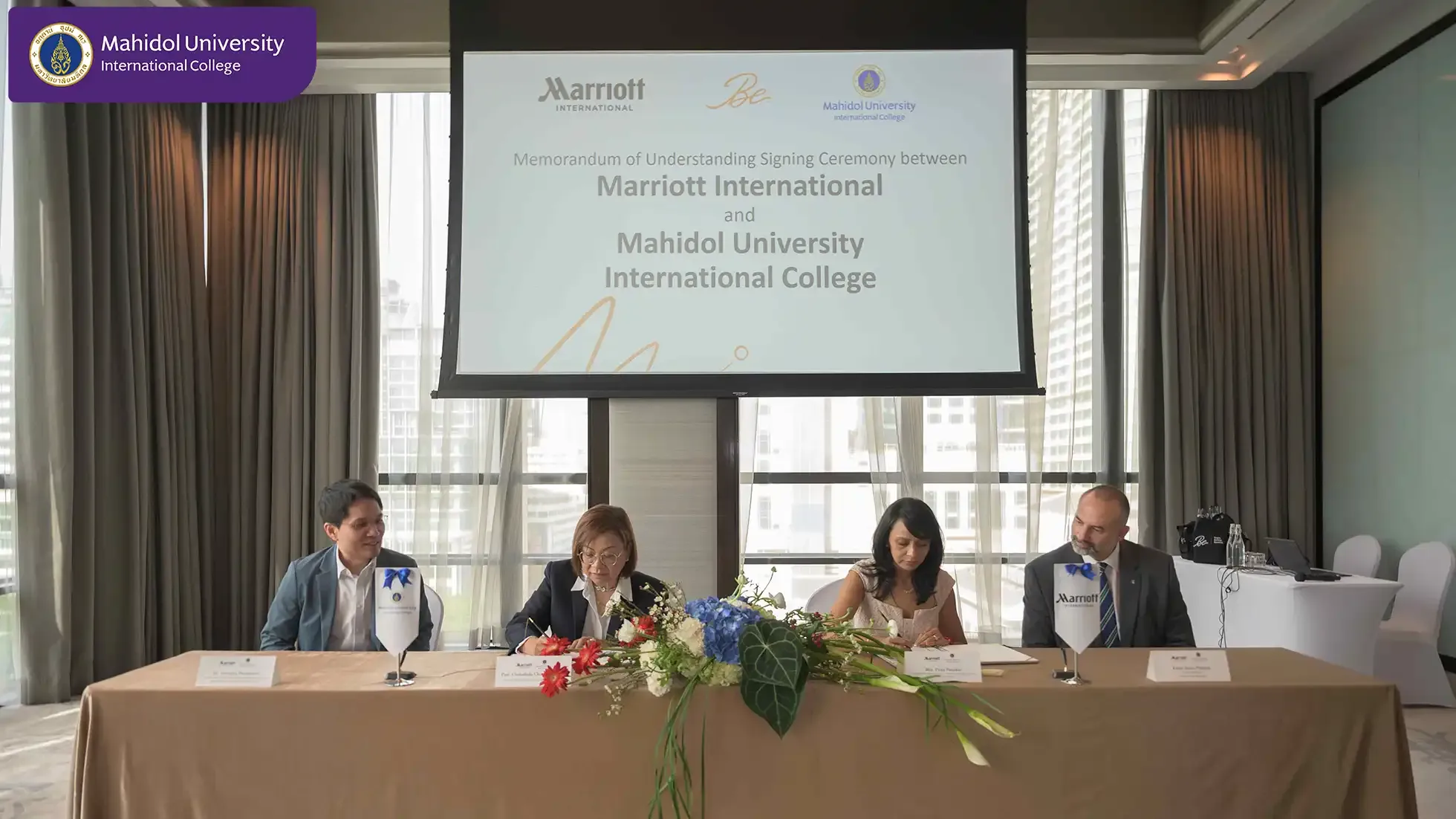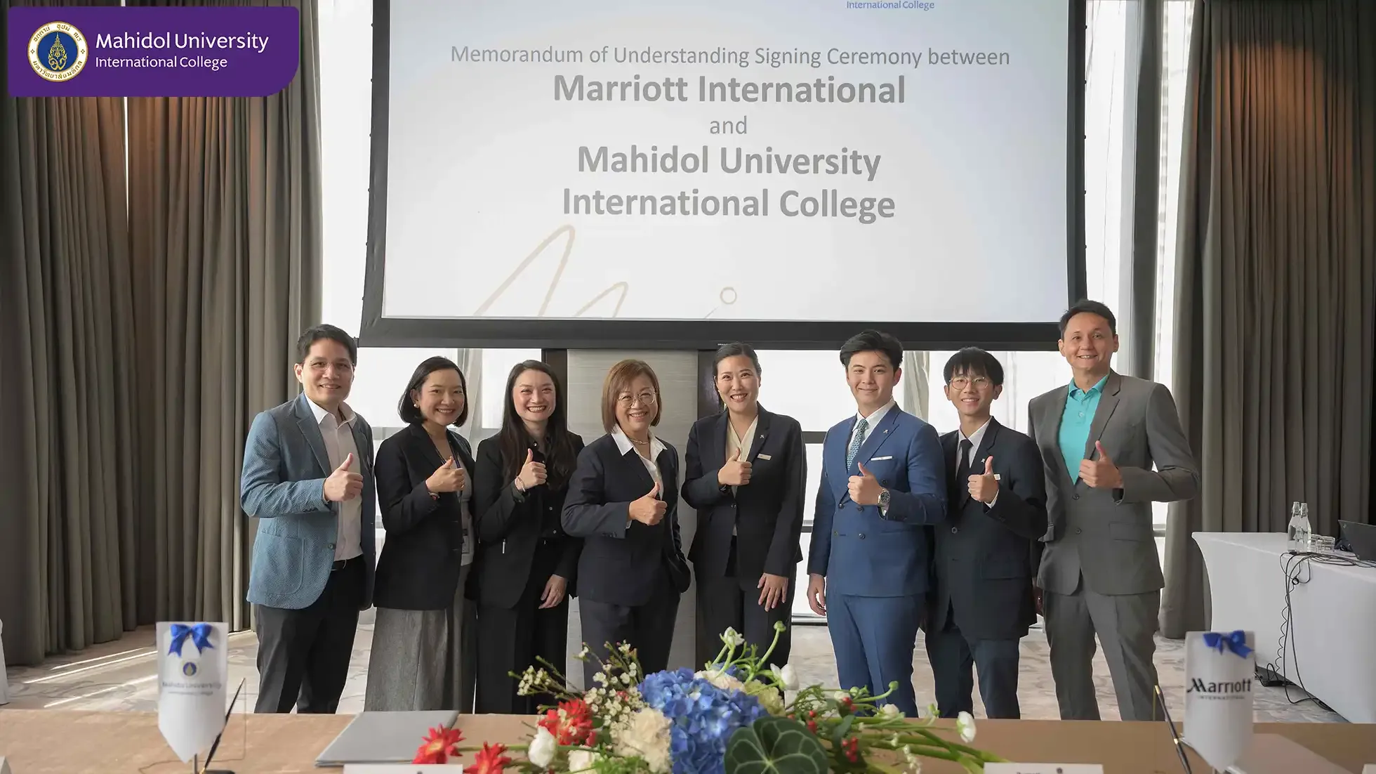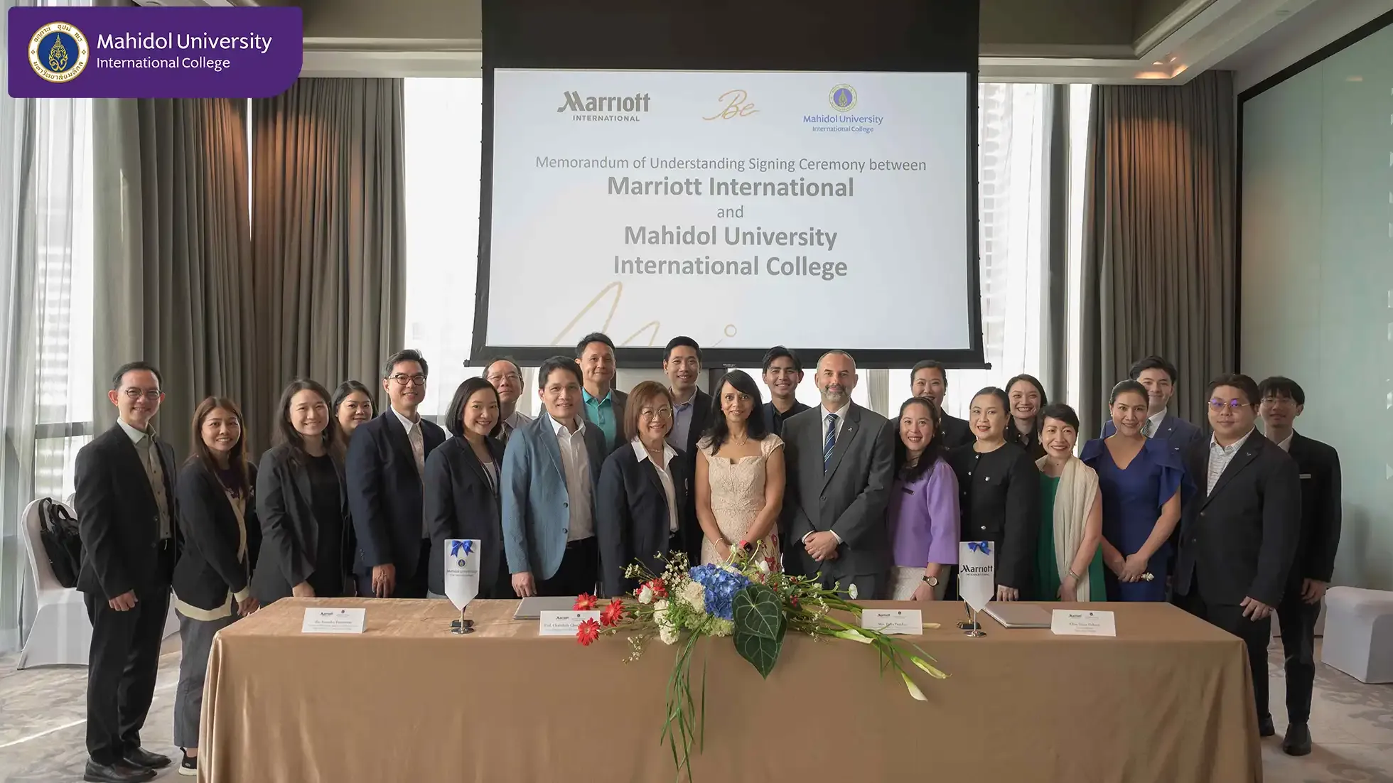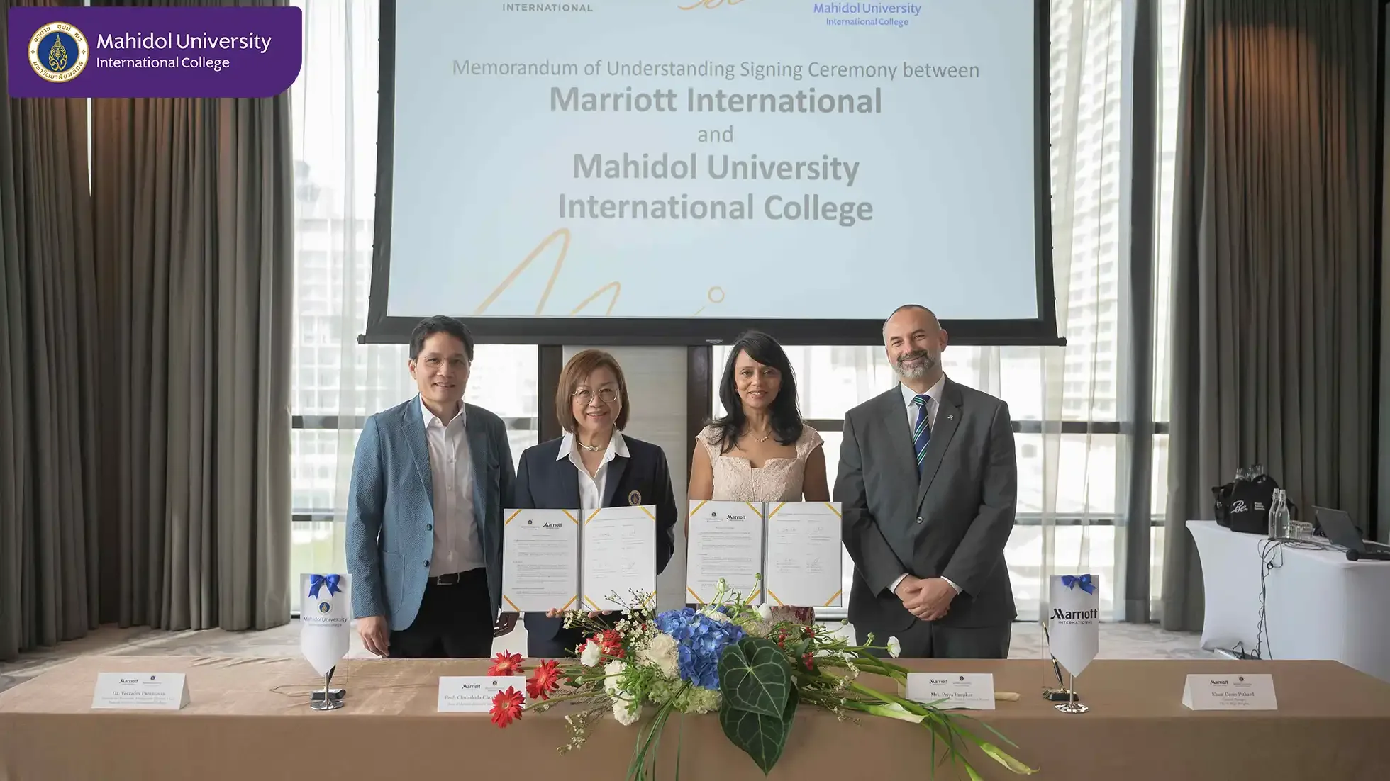 Mahidol University International College (MUIC) and Marriott International signed a Memorandum of Understanding (MOU) on December 20, 2024 that includes an internship program for students of the Travel and Service Business Entrepreneurship (BM-TSB) major program, and also research and special project collaborations between personnel of the two organizations.