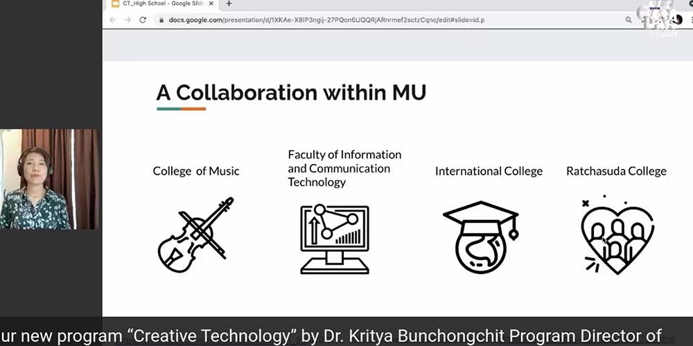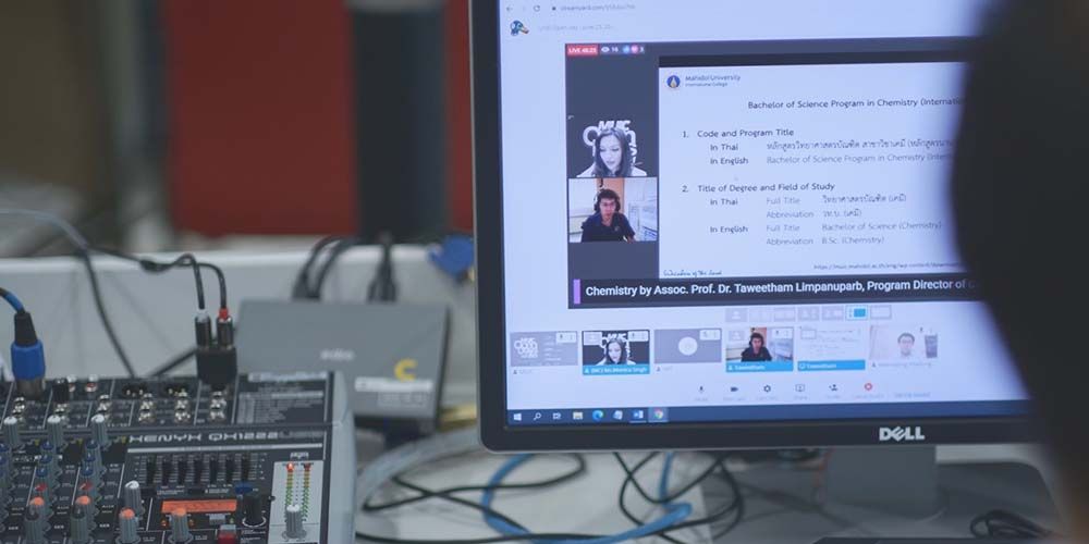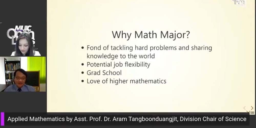 Assoc. Prof. Chulathida Chomchai, M.D., Dean of MUIC gave the opening remarks. For three days, the virtual online event featured Business and Entrepreneur Day, Science Day, and Art, Politics and Languages Day. MUIC lecturers, current students, and special guests came to talk about MUIC’s seven international bachelor’s degree programs, two master’s degree programs, Preparation Center for Languages and Mathematics (PC) as well as Exchange Program, Pathway to Medicine Program, Admission Information, and Student Clubs.