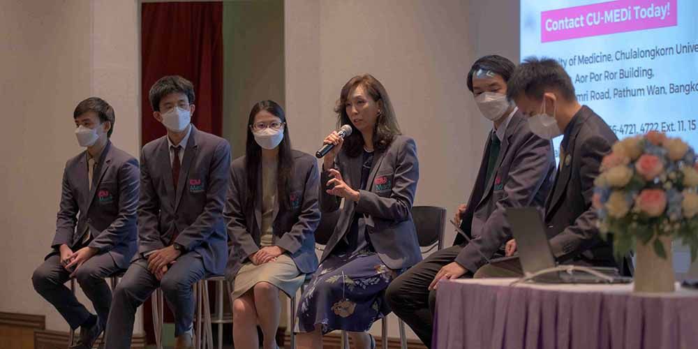The executive team of Chulalongkorn International Medical Program (CU-MEDi) visited Mahidol University International College (MUIC) to promote their program to Science Division students in an information session entitled "MUIC-Chula Graduate Entry Medicine Pathway" on November 2, 2022 at the Auditorium.