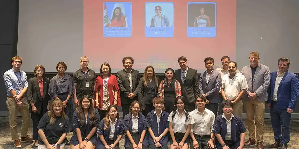 Mr. Christian Oesterheld, Chair of the Social Science Division, served as moderator in a panel discussion that featured H.E. Cecilia Galarreta, Ambassador of Peru to Thailand, Mr. Lenin Tamayo, Peruvian singer and dancer and proponent of Q-Pop, and Ms. Yolanda Pinares, Peruvian folk singer and Mr. Tamayo’s mother.
