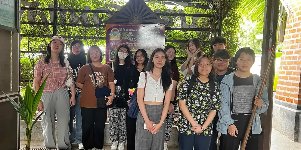 The participating students, accompanied by two Student Affairs educators, learned about the history of the community and participated in four booth activities. These activities included coconut sugar production, traditional Thai sweets, and local food preservation.