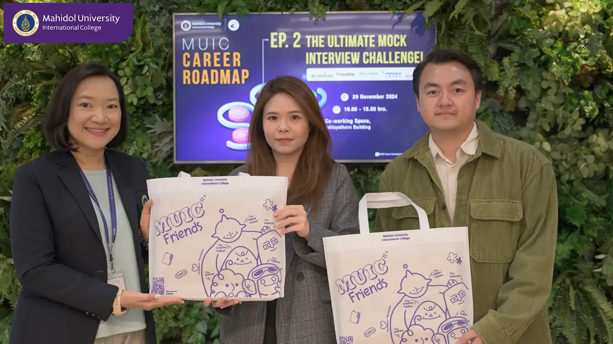 The Alumni Affairs and Career Development Group of Mahidol University International College (MUIC), in collaboration with Career Insight Club, organized “MUIC Career Roadmap: The Ultimate Mock Interview Challenge” on November 29, 2024 at the Co-working Space, 3rd Floor, Aditayathorn Building.
