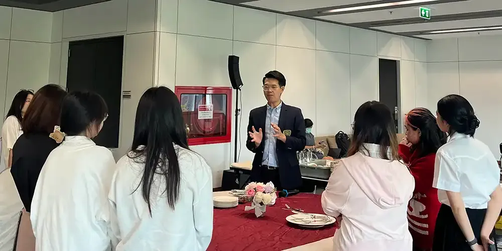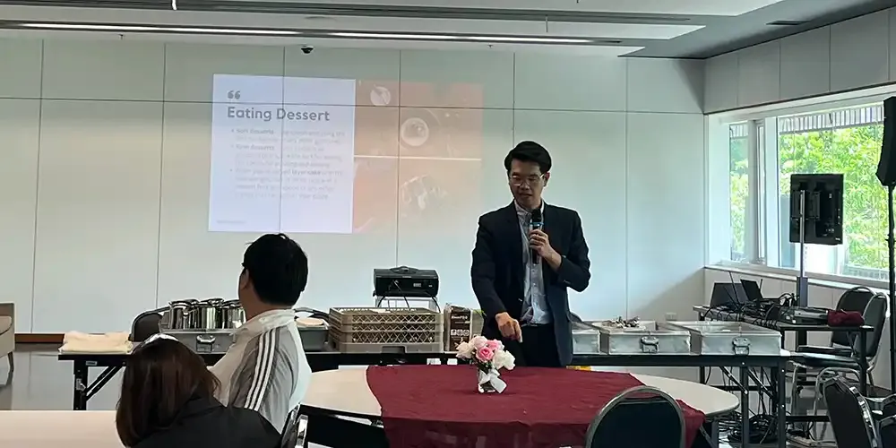 Under the mentorship of Prof. Songkran Klomsook, participants learned the proper use of  various tableware and gained a practical understanding of basic table manners through hands-on practice in groups. The students also acquired the skills to confidently set a table for both informal and formal occasions. This engaging workshop helped the participants to elevate their dining experiences, leaving every individual with a newfound confidence and an e-certificate to commemorate their participation.