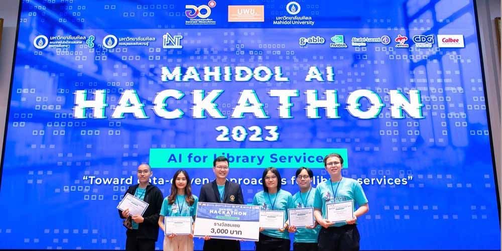 “Mahidol AI Hackathon: AI for Library Services” was organized by ICT Mahidol together with Mahidol University Library and Knowledge Center, as well as the Institute of Technology and Innovation Management (iNT), under the theme "AI for Library Services" during March 18 - 19, 2023 at the Faculty of ICT, Mahidol University, Salaya Campus.