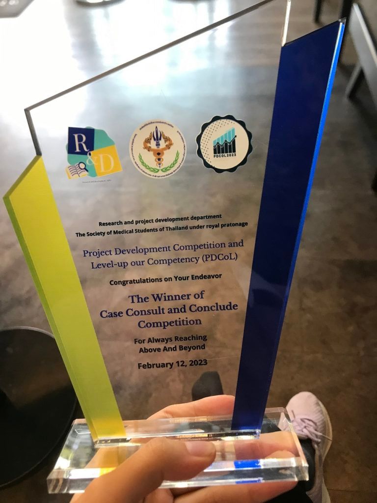 A team of students from Mahidol University International College (MUIC) won 1st Place in the 3C Project Development Competition and Level-up our Competency (PDCoL) organized by the Research and Project Development Department, The Society of Medical Students of Thailand under Royal Patronage at Siriraj Hospital on February 12, 2023.